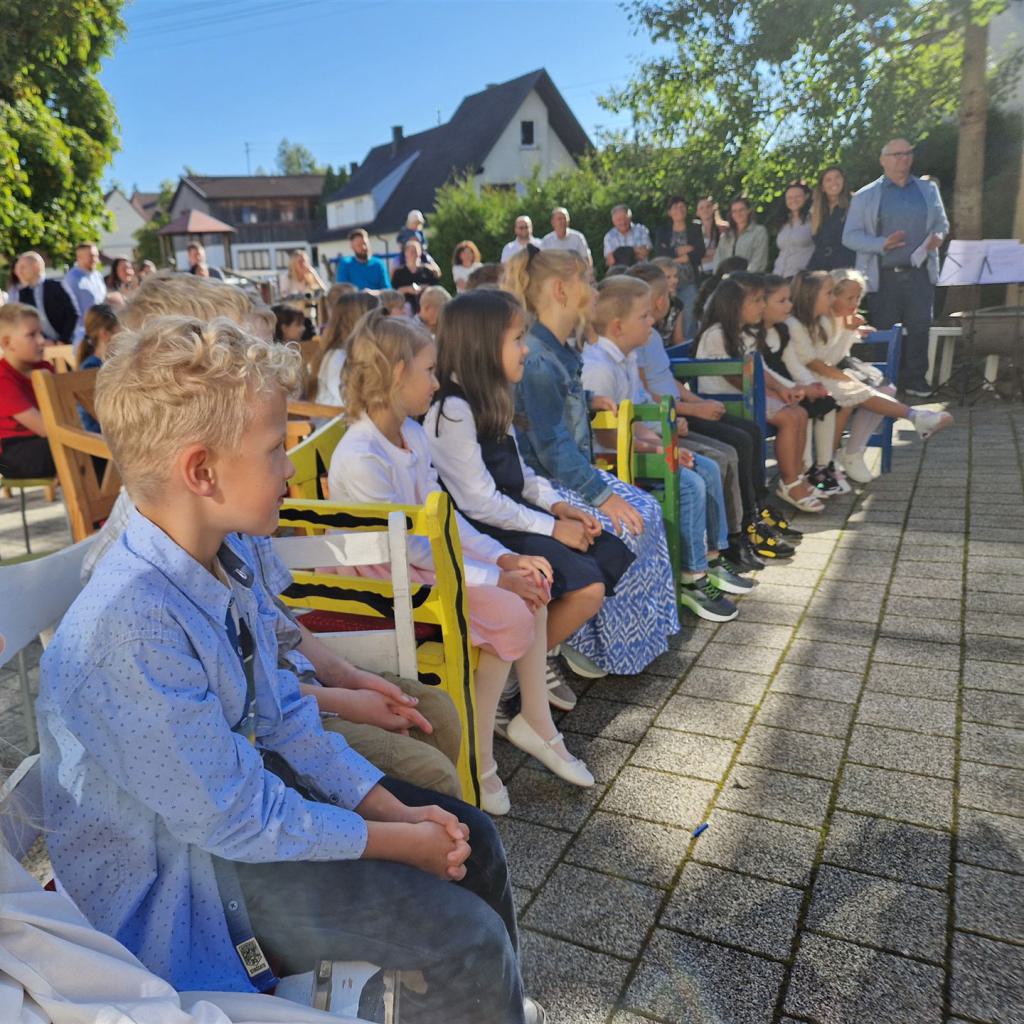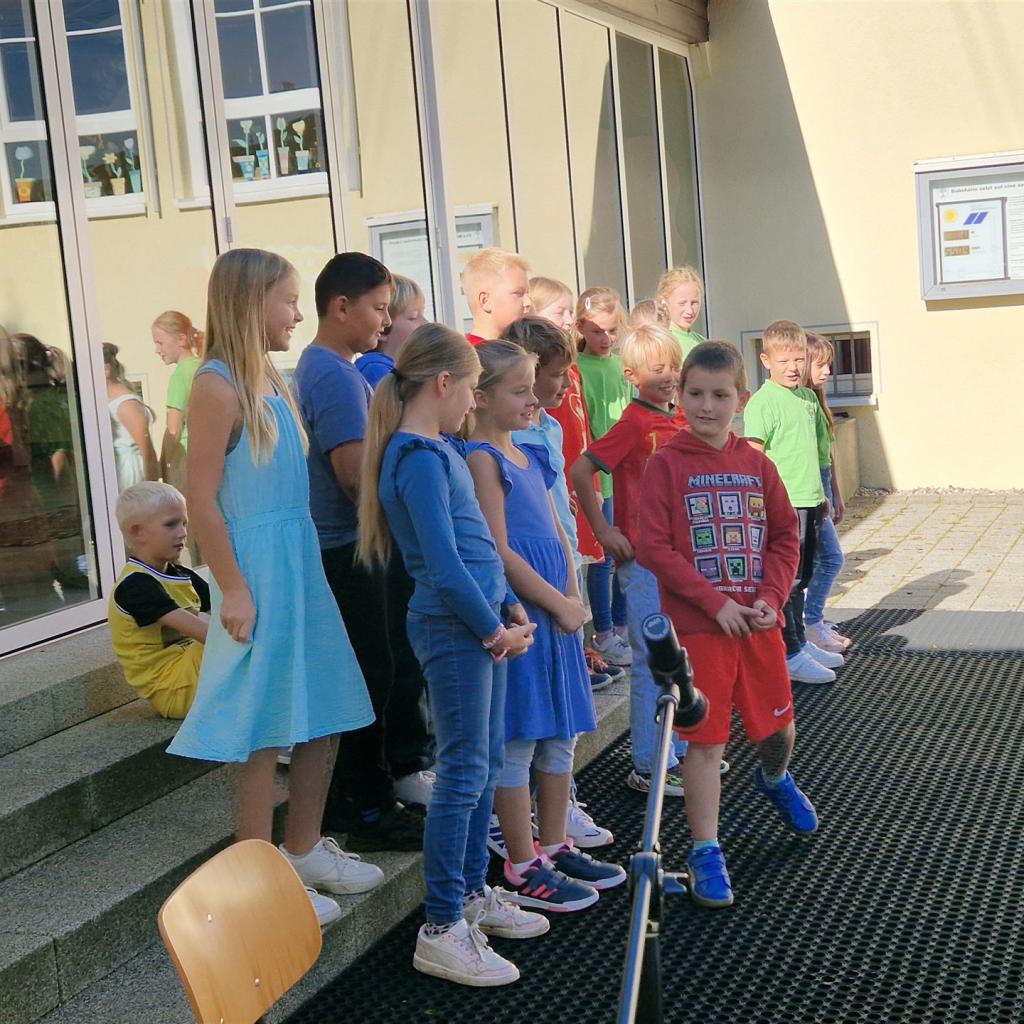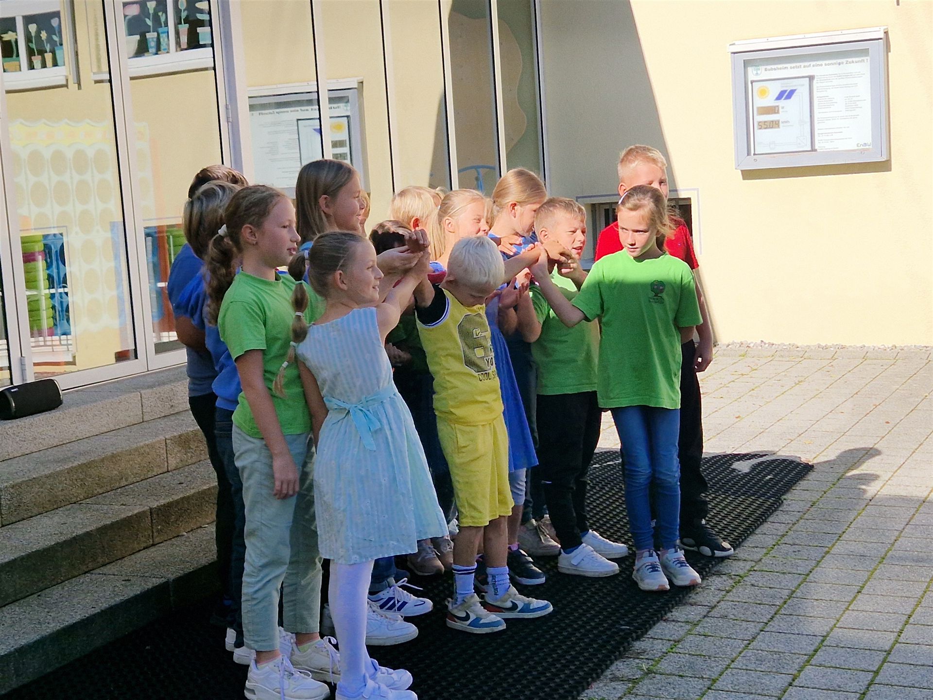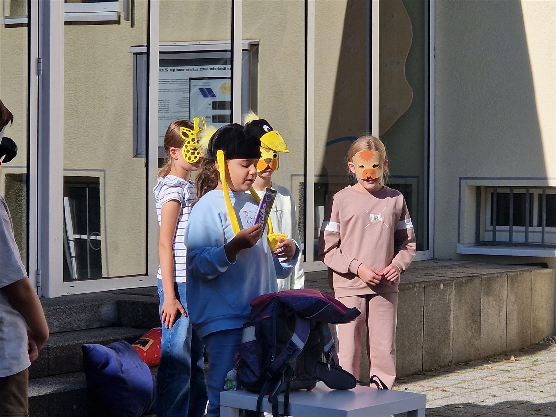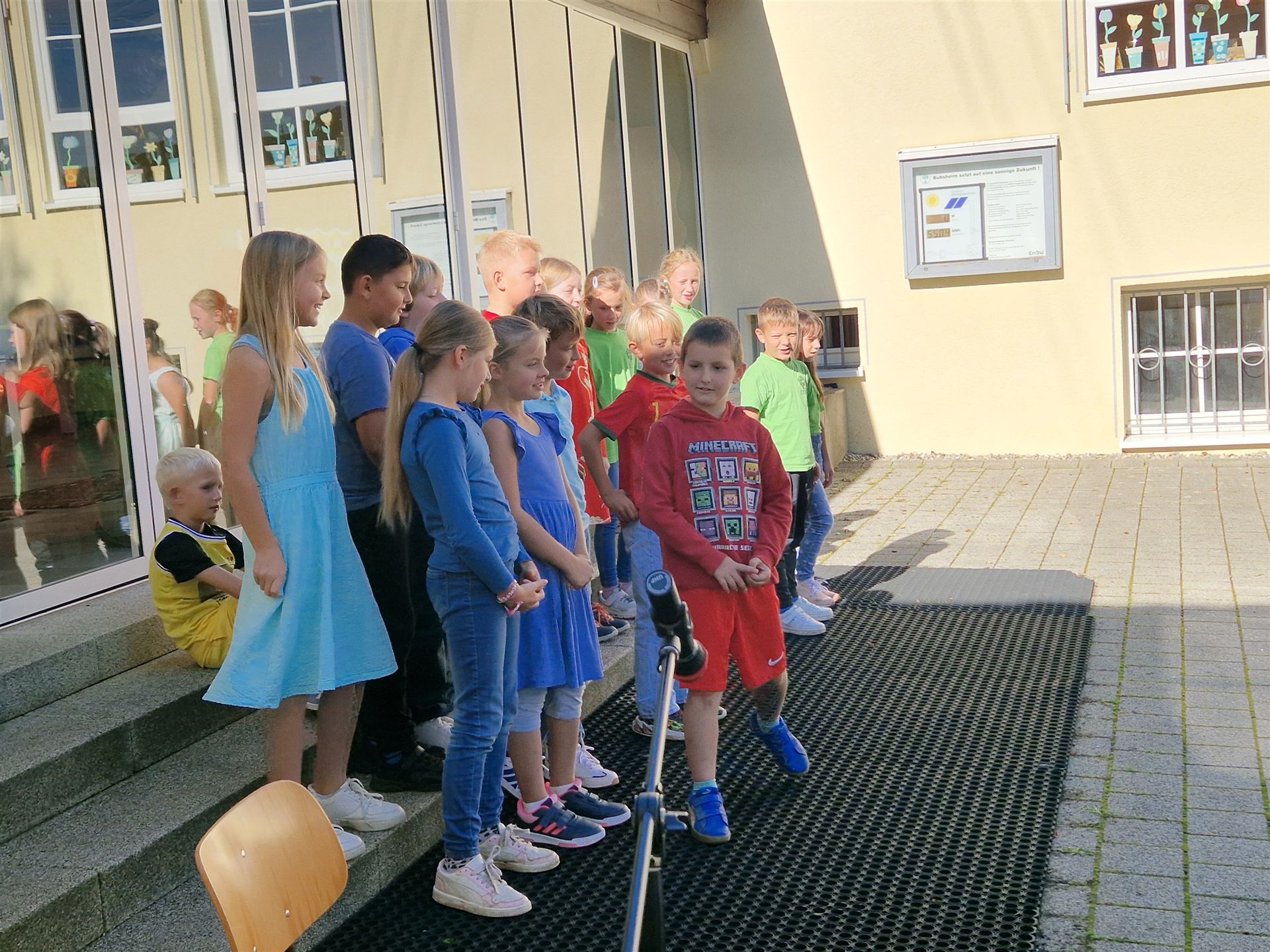 Die Feier fand auf unserem Schulhof statt und wurde liebevoll von den anderen Klassen mitgestaltet: