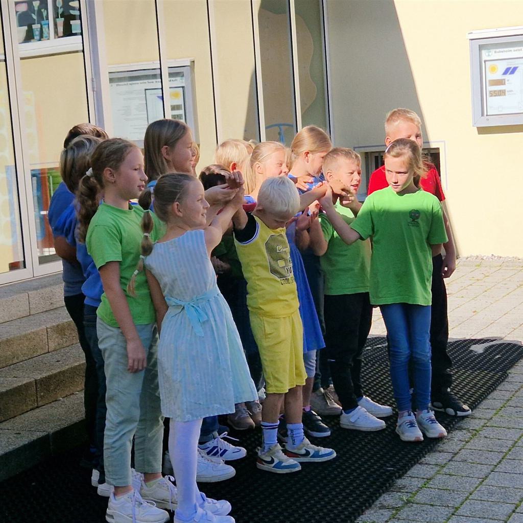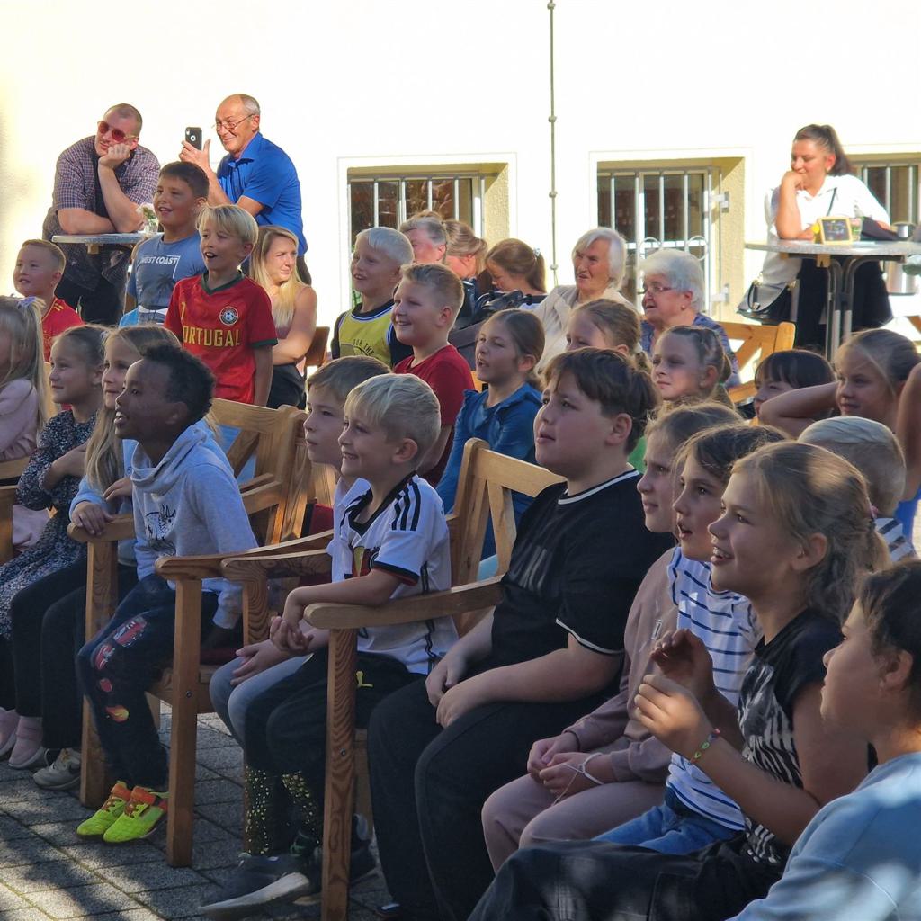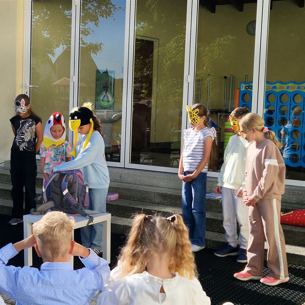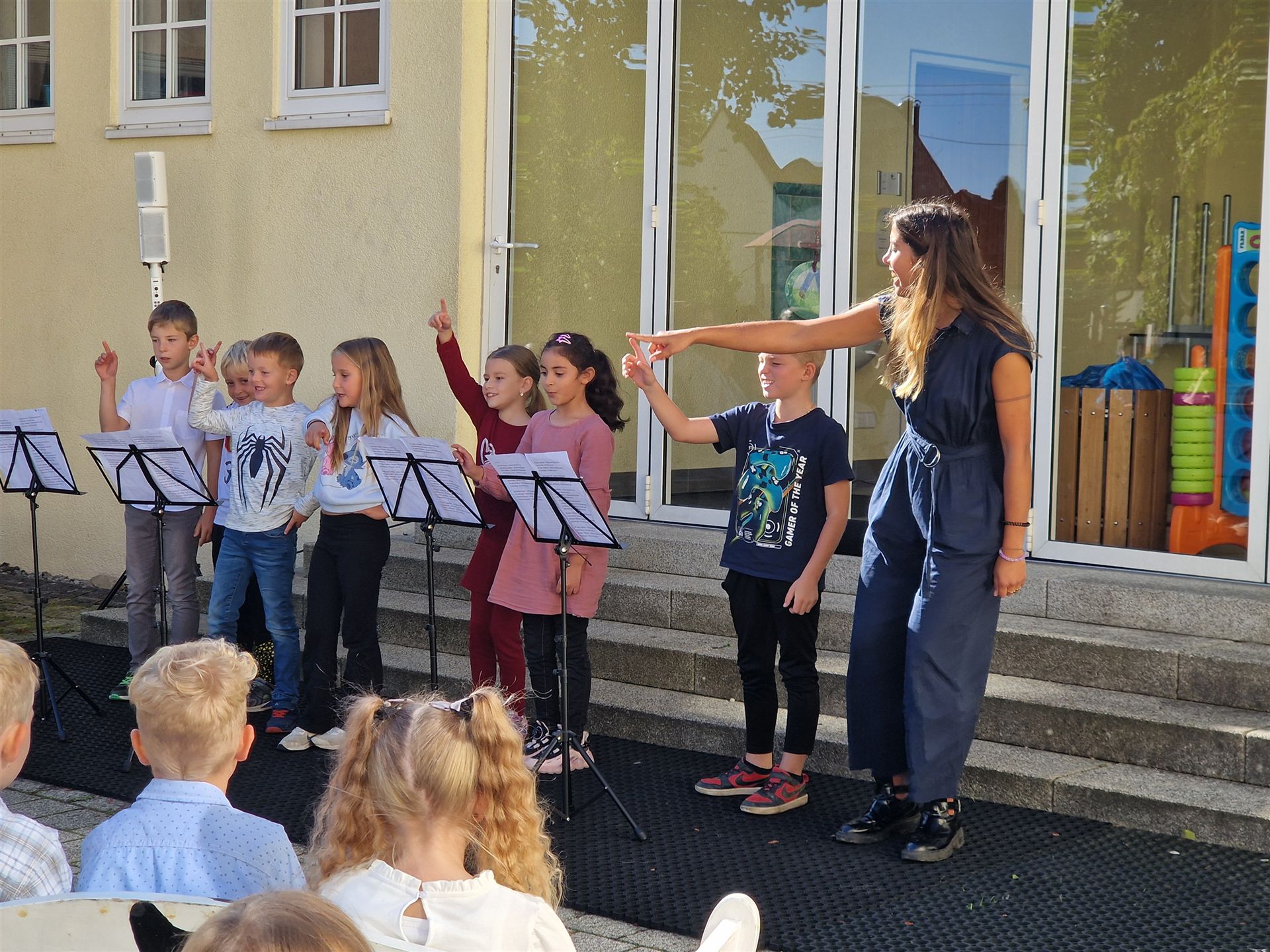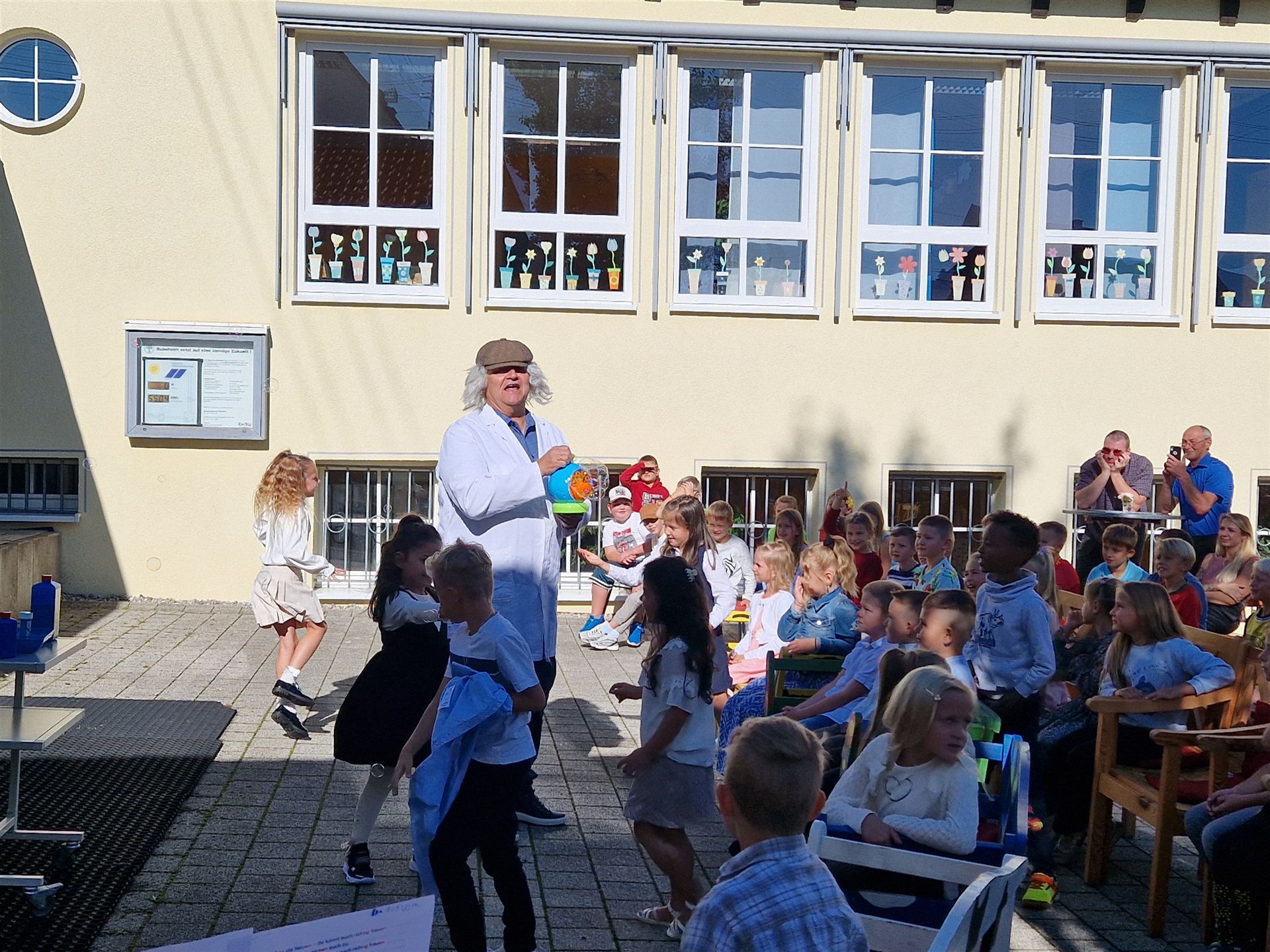 Die Feier fand auf unserem Schulhof statt und wurde liebevoll von den anderen Klassen mitgestaltet: