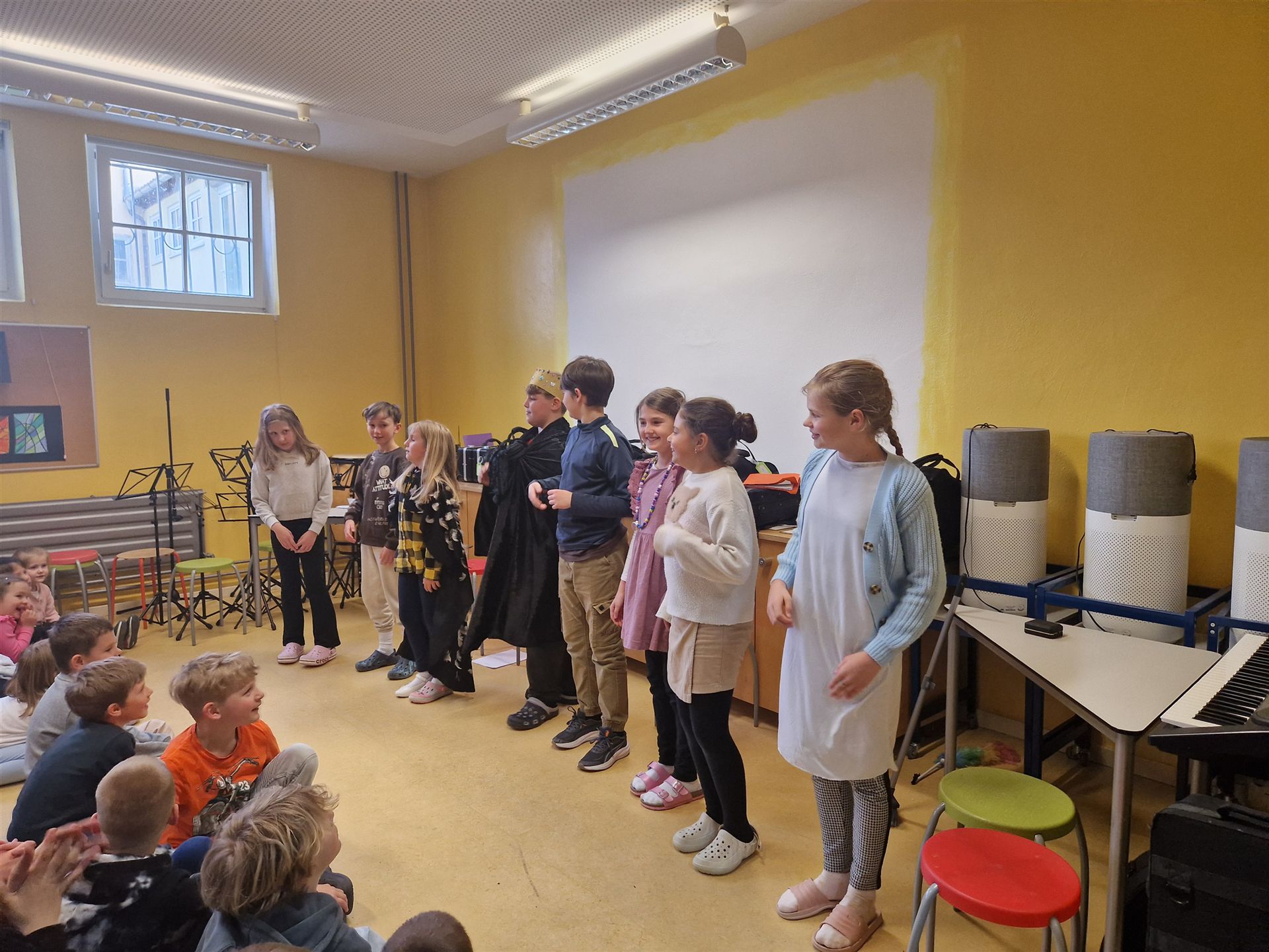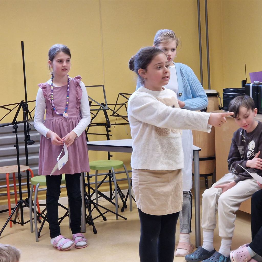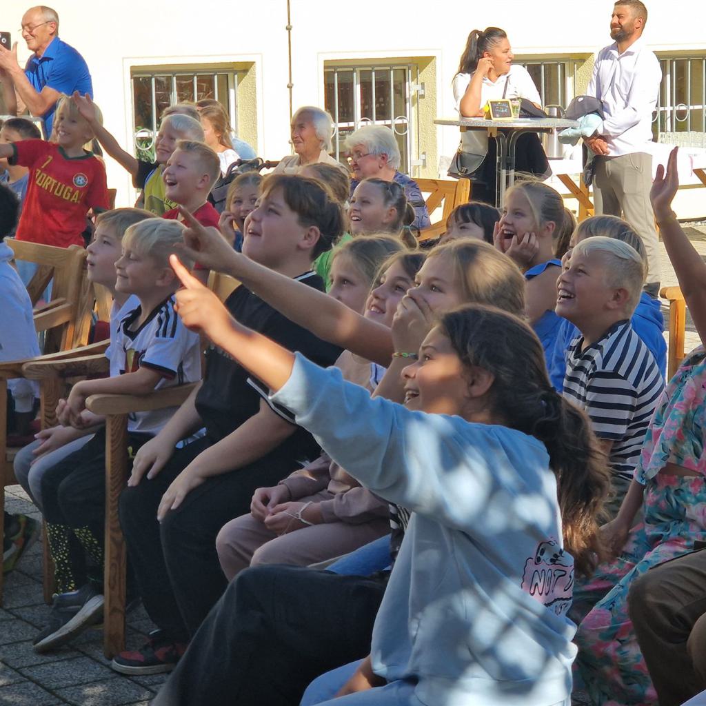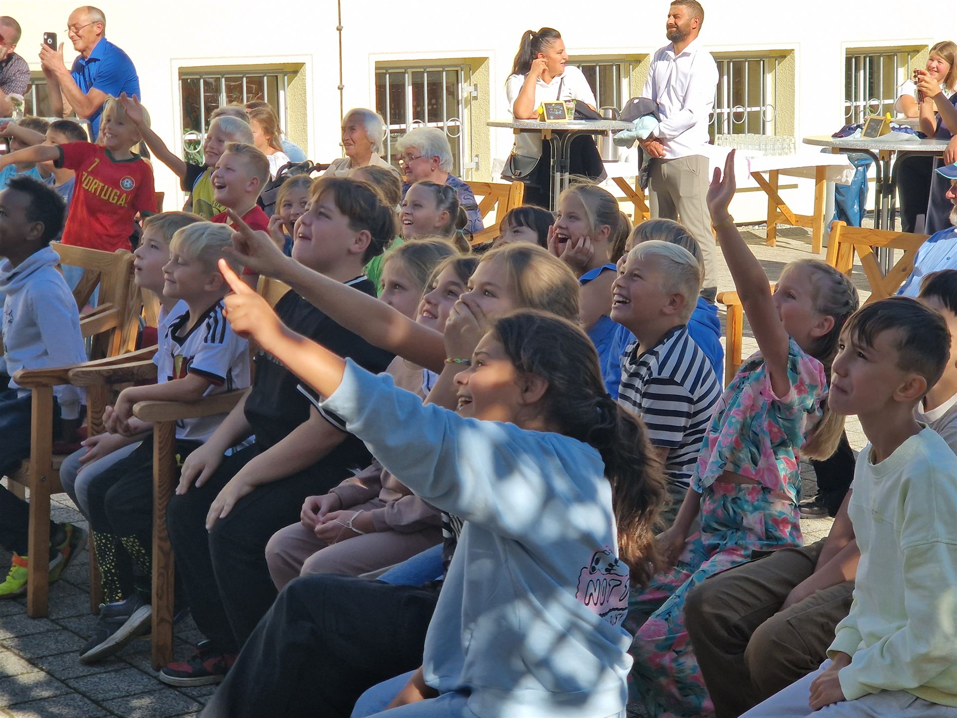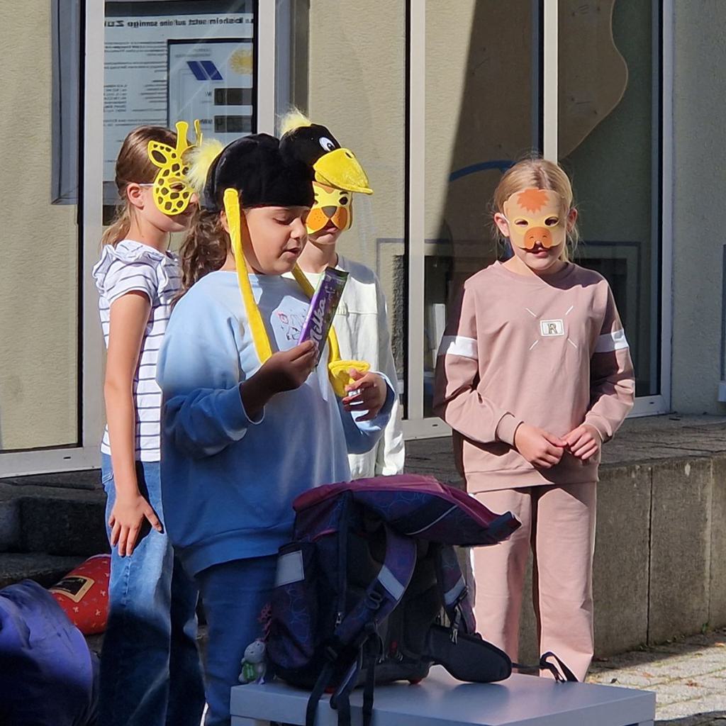 Unsere Viertklässler führten ein Theaterstück auf – die Geschichte vom Raben, der zur Schule will, sorgte für viele Schmunzler und begeisterte nicht nur die Kinder. Auch die Drittklässler trugen mit einem schwungvollen Lied zur festlichen Stimmung bei.