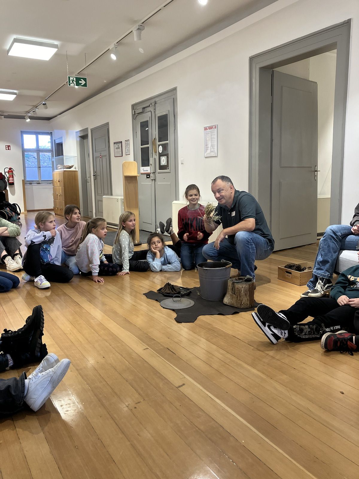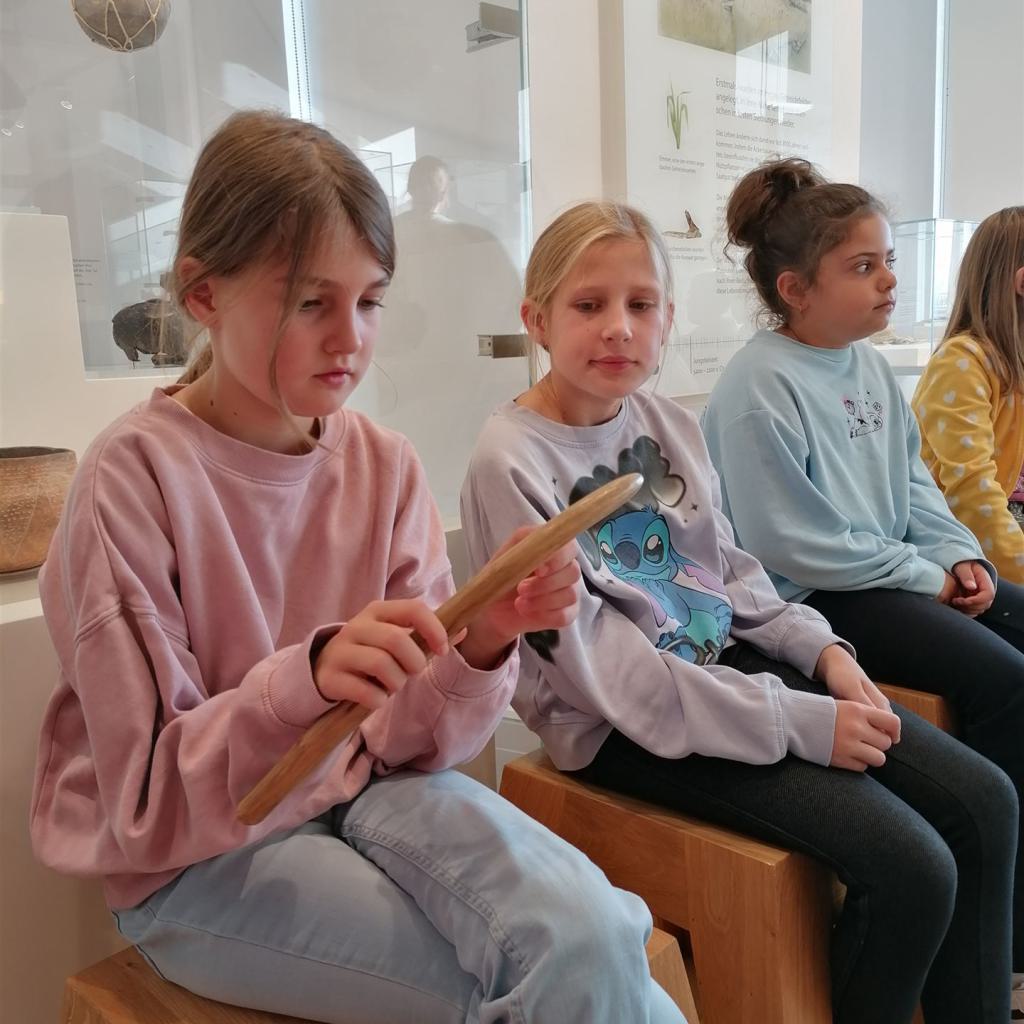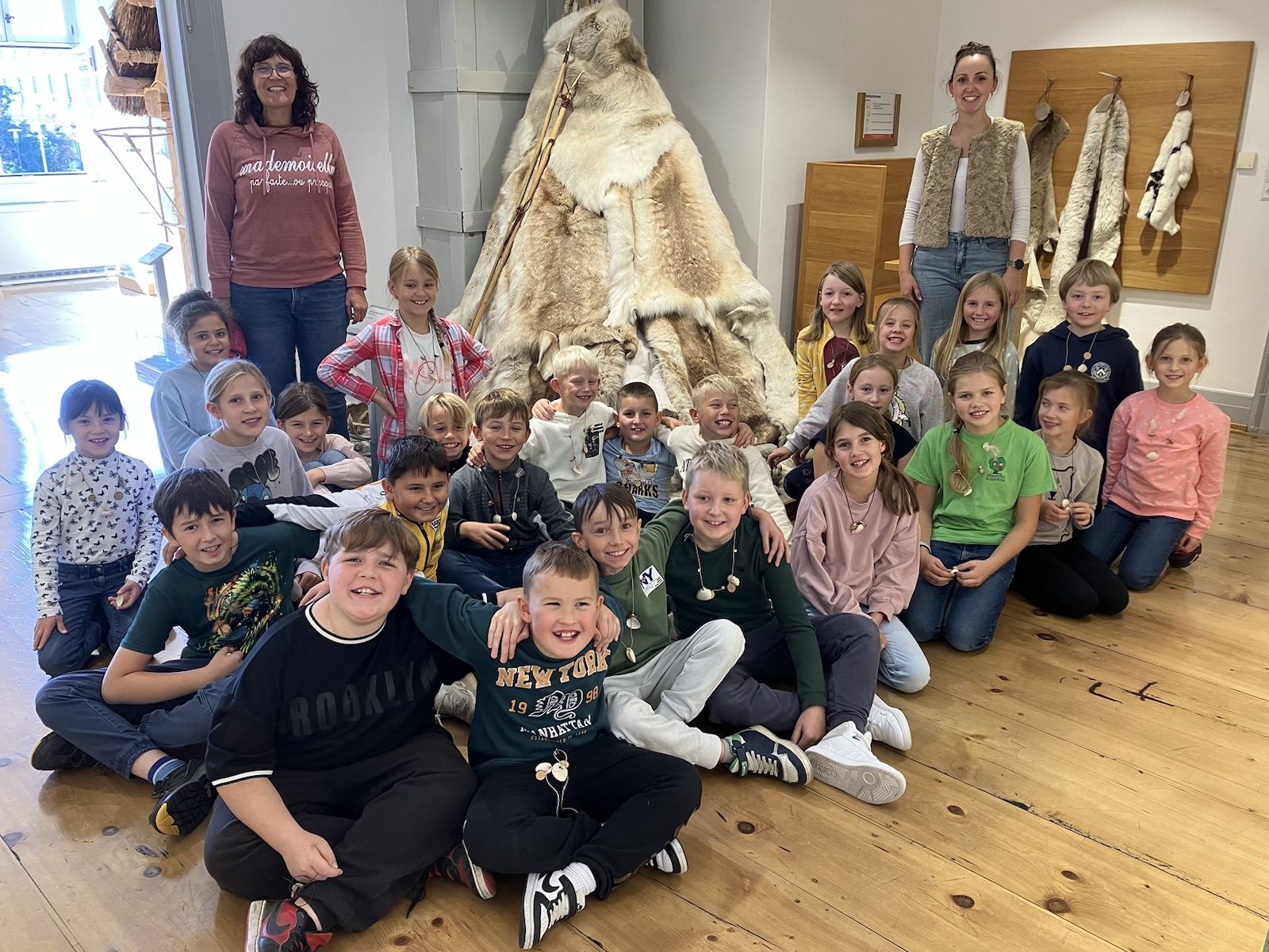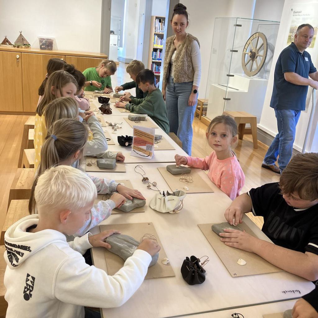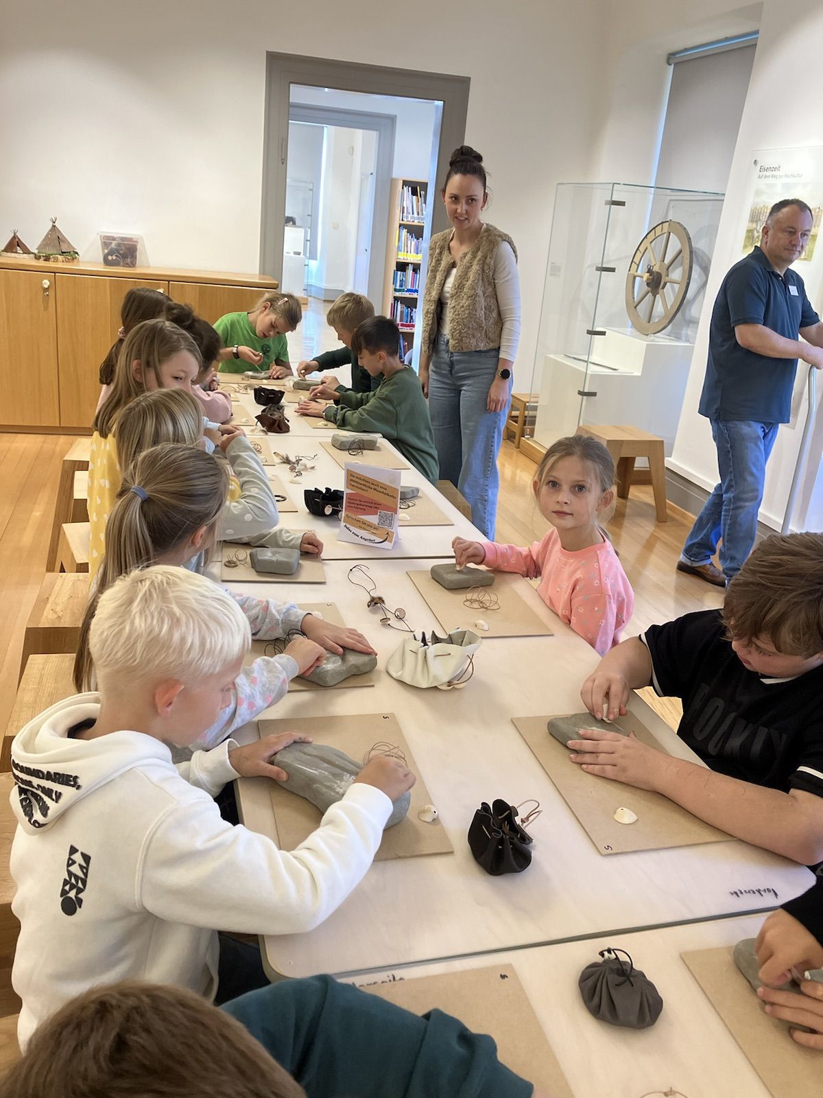 Mit dem Bus ging es für uns nach Singen ins Hegau Museum. Dort durften wir allerlei Spannendes über die Jungsteinzeit erfahren und sogar selbst erleben. Gemeinsam wurde ein steinzeitliches Feuer entfacht, was alle faszinierte. Als Highlight durfte jedes Kind ein eigenes Amulett anfertigen und selbst erleben, wie hart das damalige Leben gewesen sein musste.