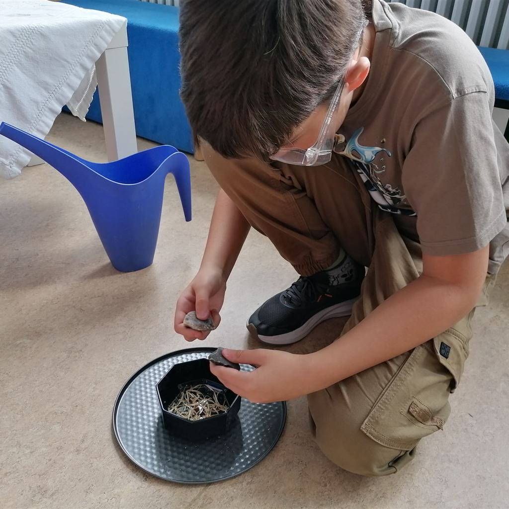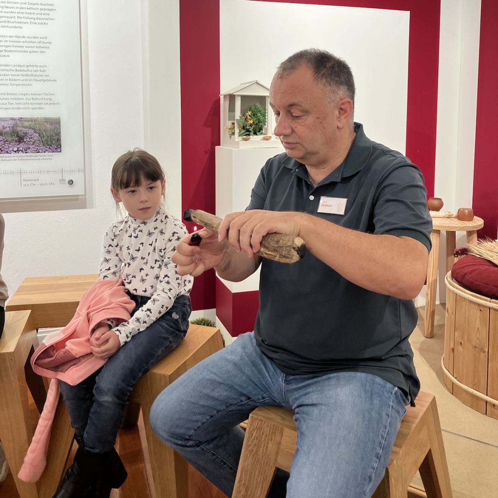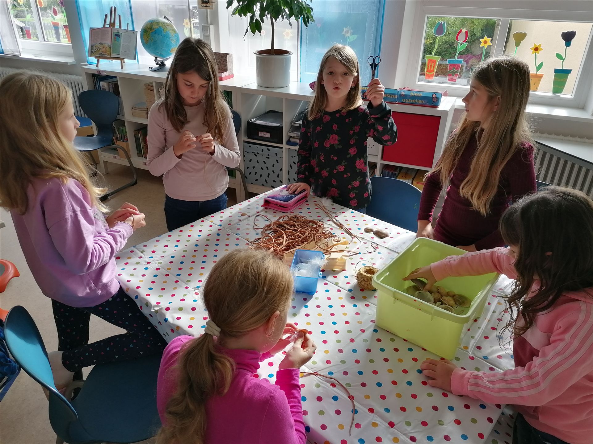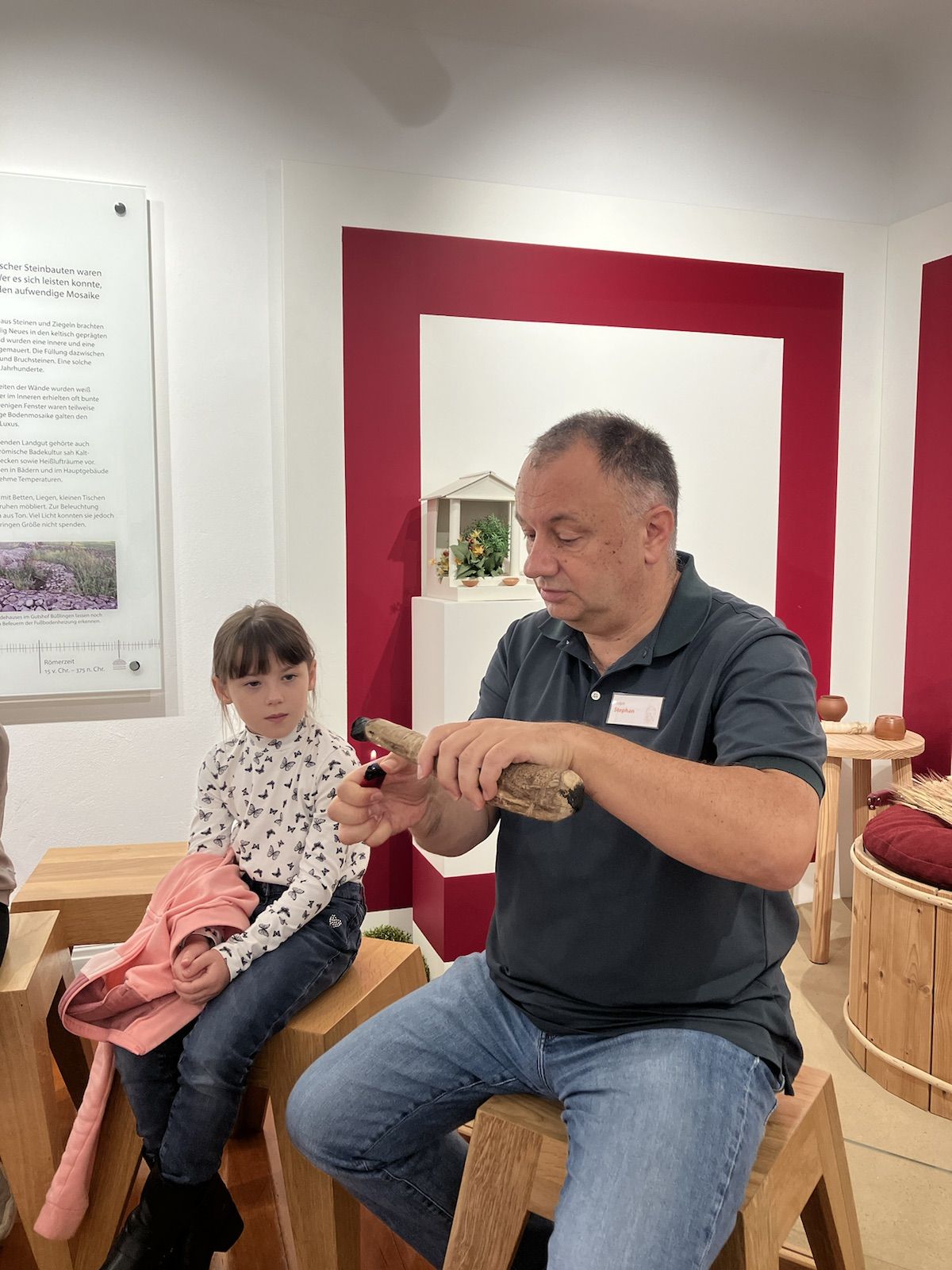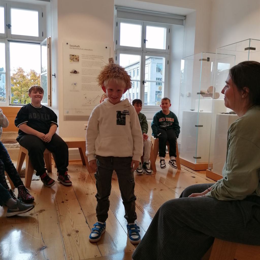 Mit dem Bus ging es für uns nach Singen ins Hegau Museum. Dort durften wir allerlei Spannendes über die Jungsteinzeit erfahren und sogar selbst erleben. Gemeinsam wurde ein steinzeitliches Feuer entfacht, was alle faszinierte. Als Highlight durfte jedes Kind ein eigenes Amulett anfertigen und selbst erleben, wie hart das damalige Leben gewesen sein musste.