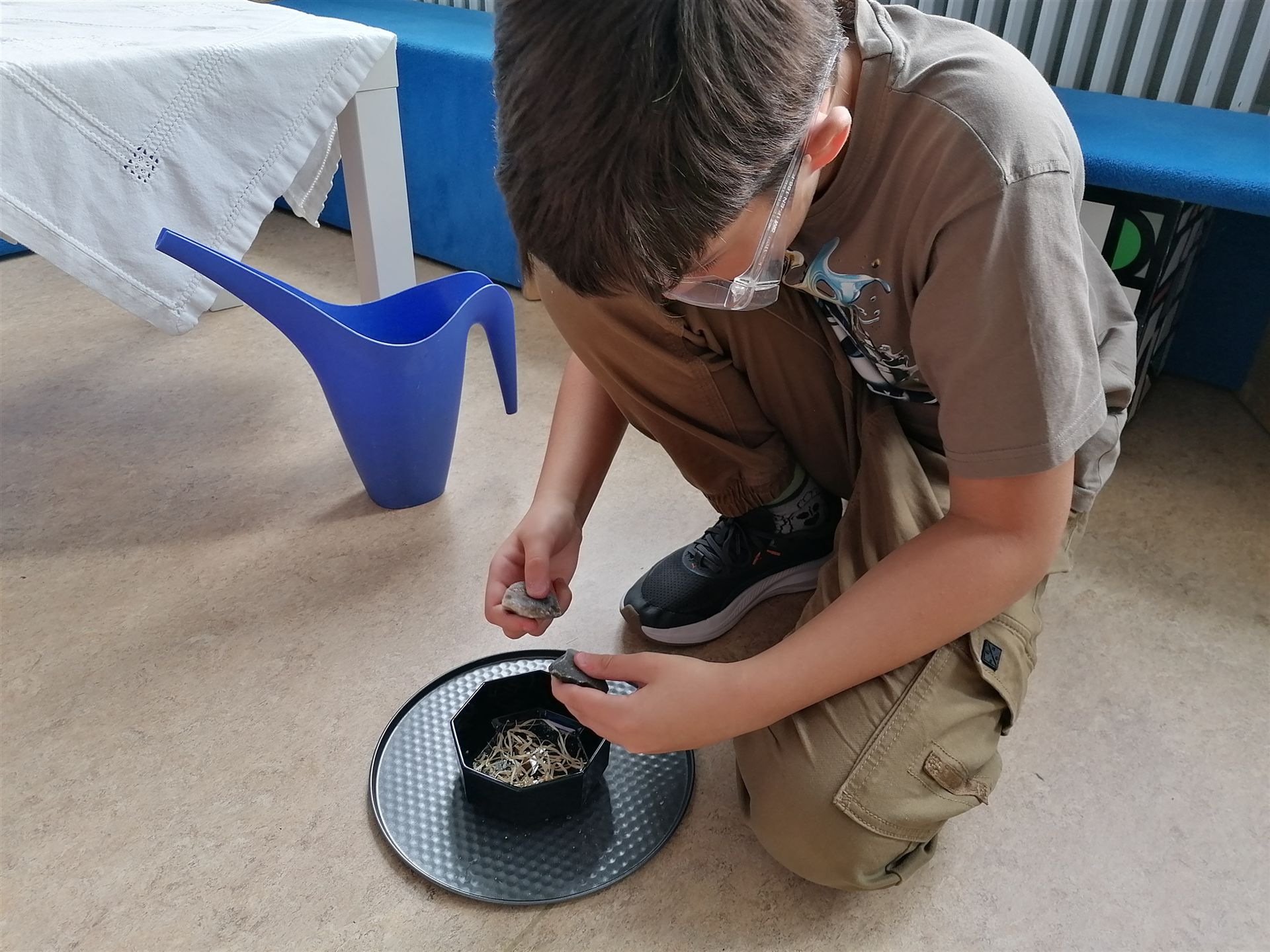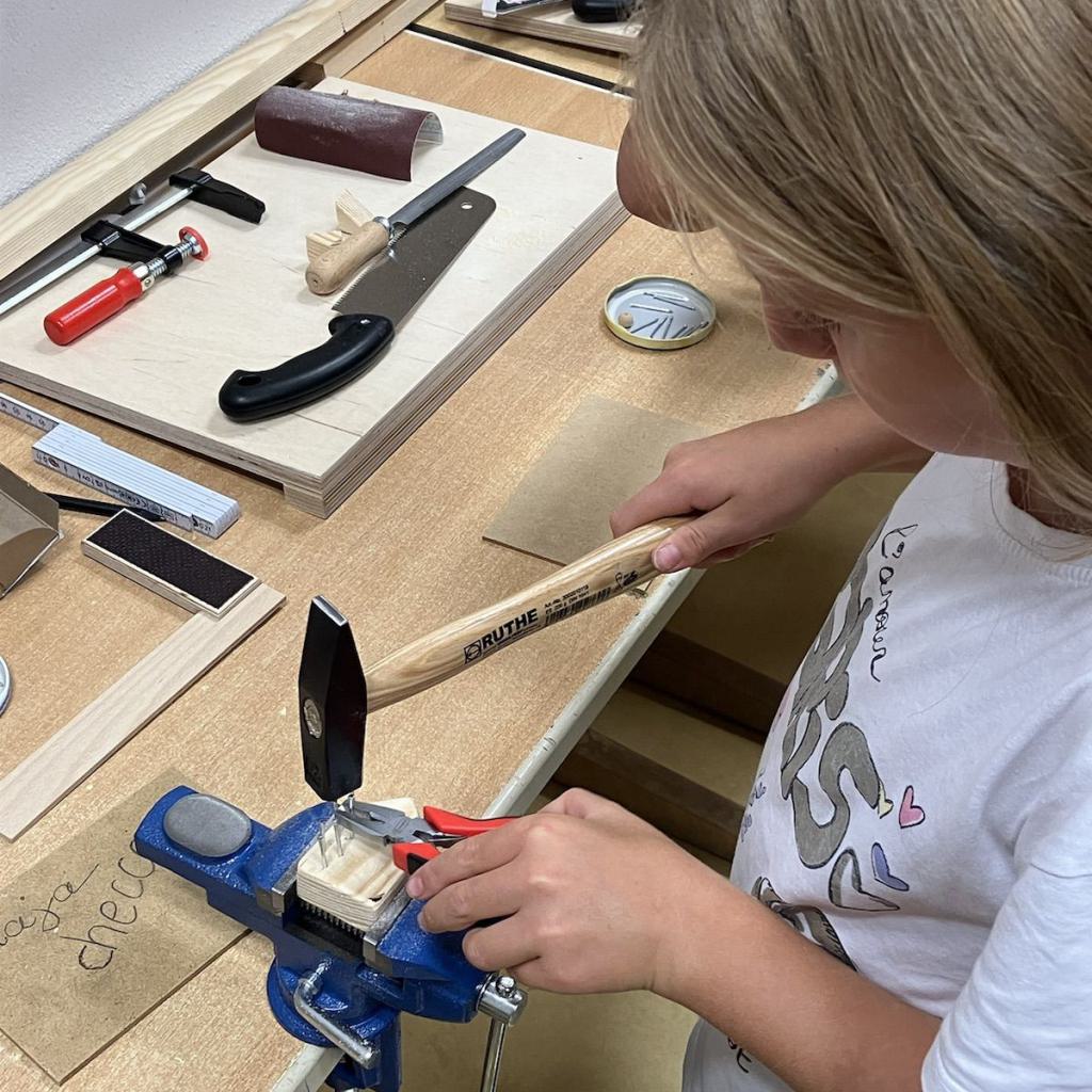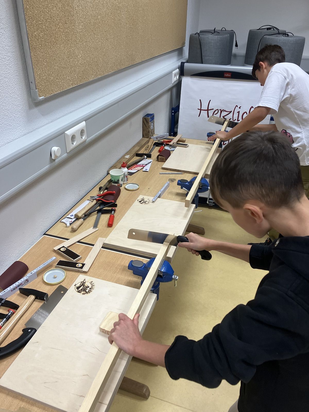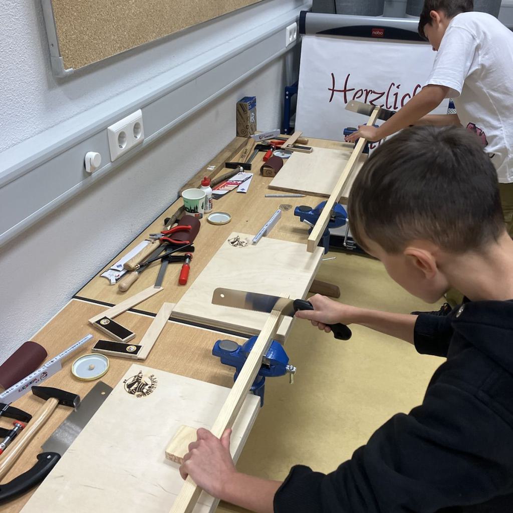 Wir haben jetzt auch endlich ein kleines Werkstättle in dem die Kinder mit Frau Müller-Kolb werkeln können.