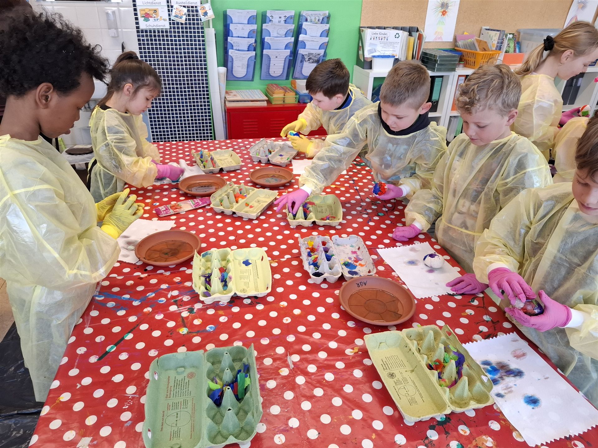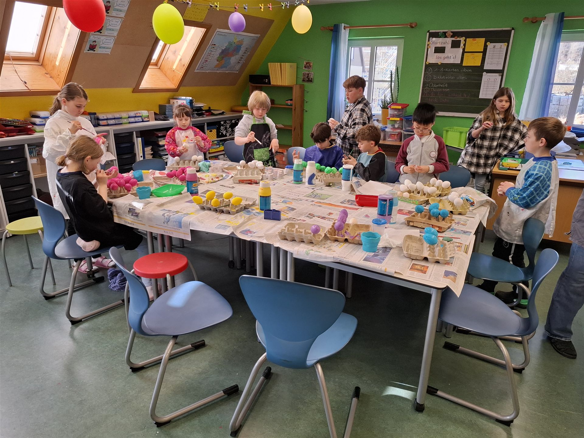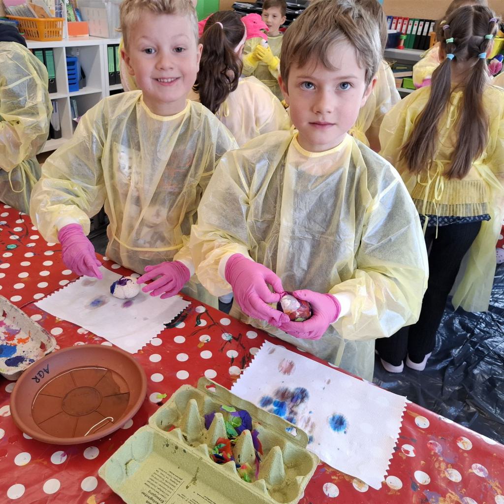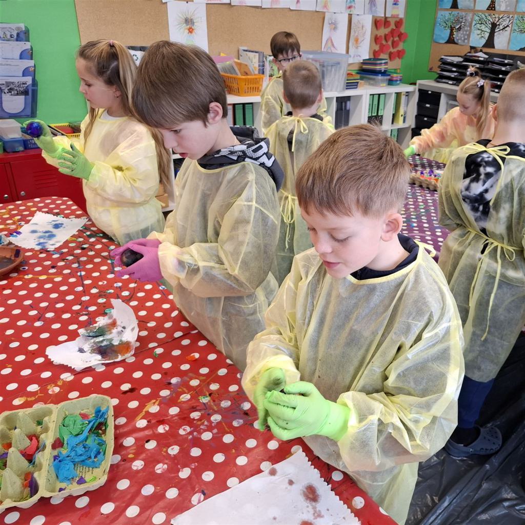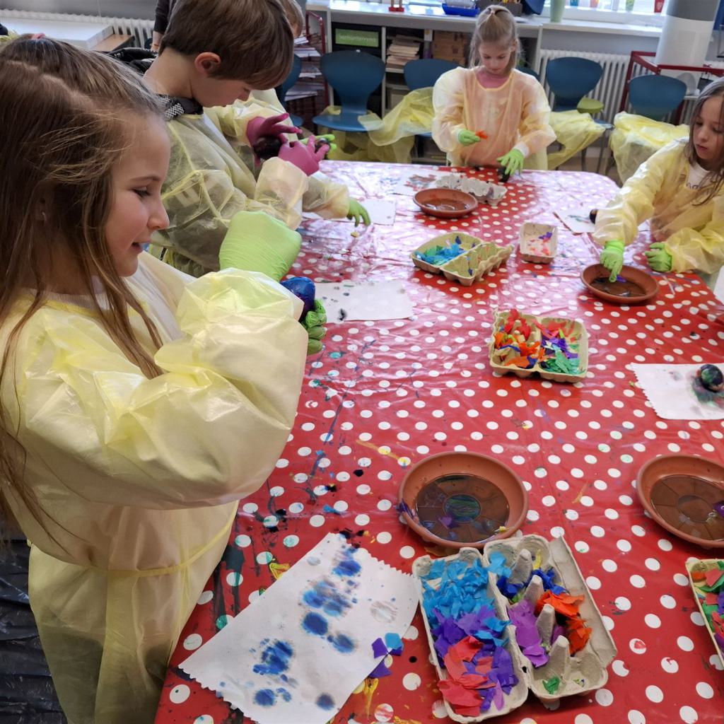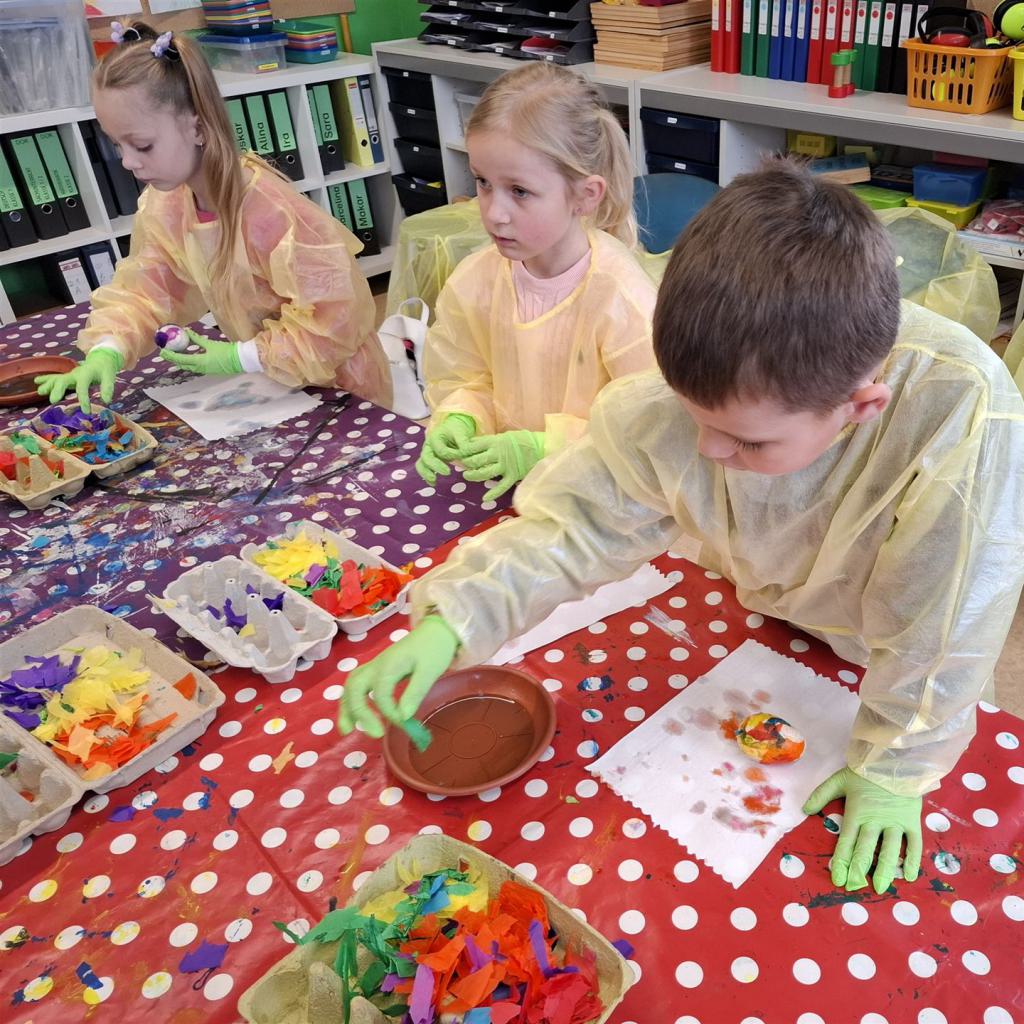 Mit viel Kreativität und Begeisterung nahmen die Kinder an den zahlreichen Bastelangeboten rund um Ostern teil. Ein besonderes Highlight waren dabei die wunderschönen Puteneier, die uns freundlicherweise von Frau Keller zur Verfügung gestellt wurden – herzlichen Dank dafür! Die Eier wurden mit viel Fantasie gestaltet: Ob als niedliche Tiere oder kunstvoll mit Seidenpapier verziert – jedes einzelne war ein kleines Kunstwerk.