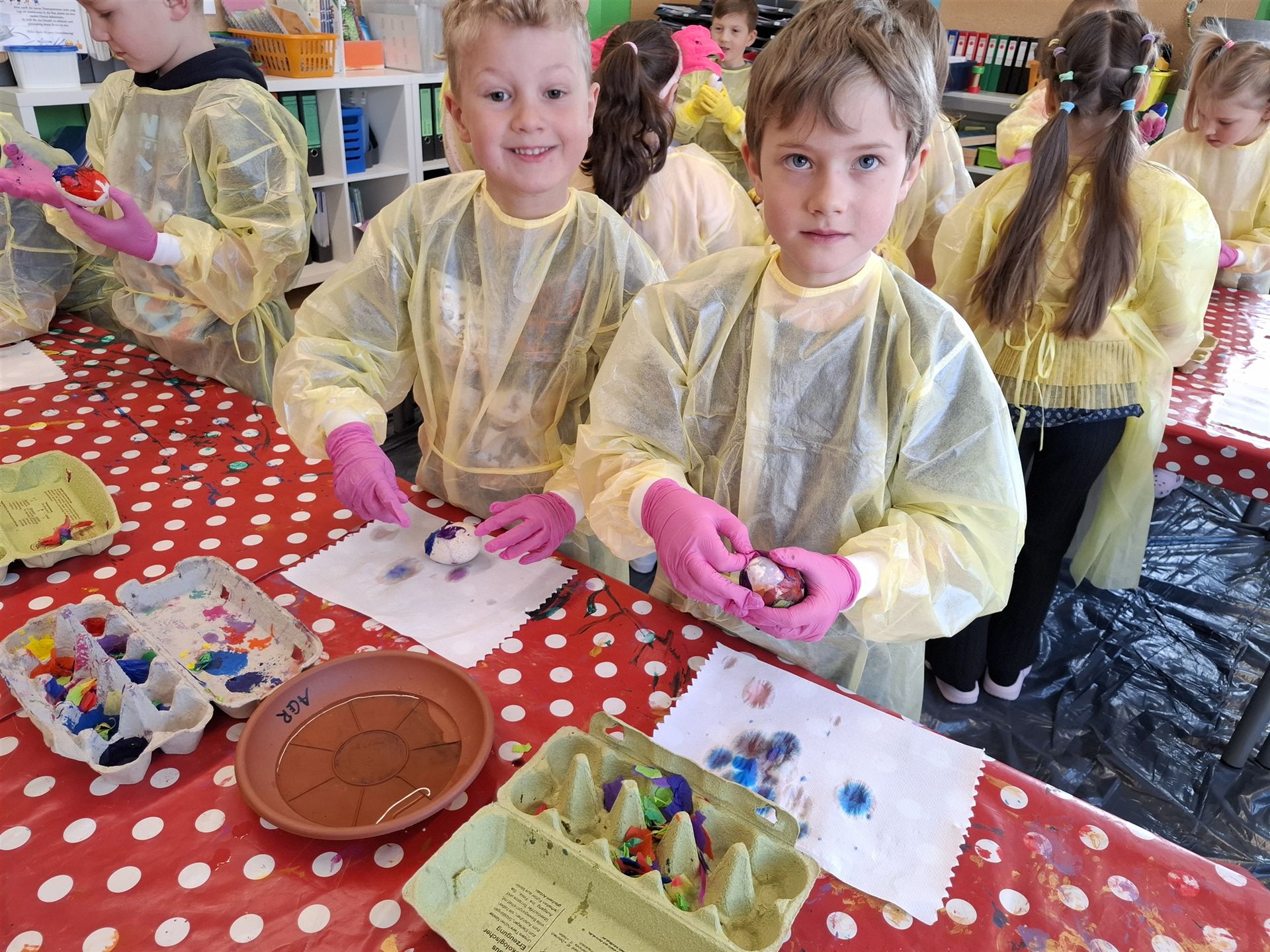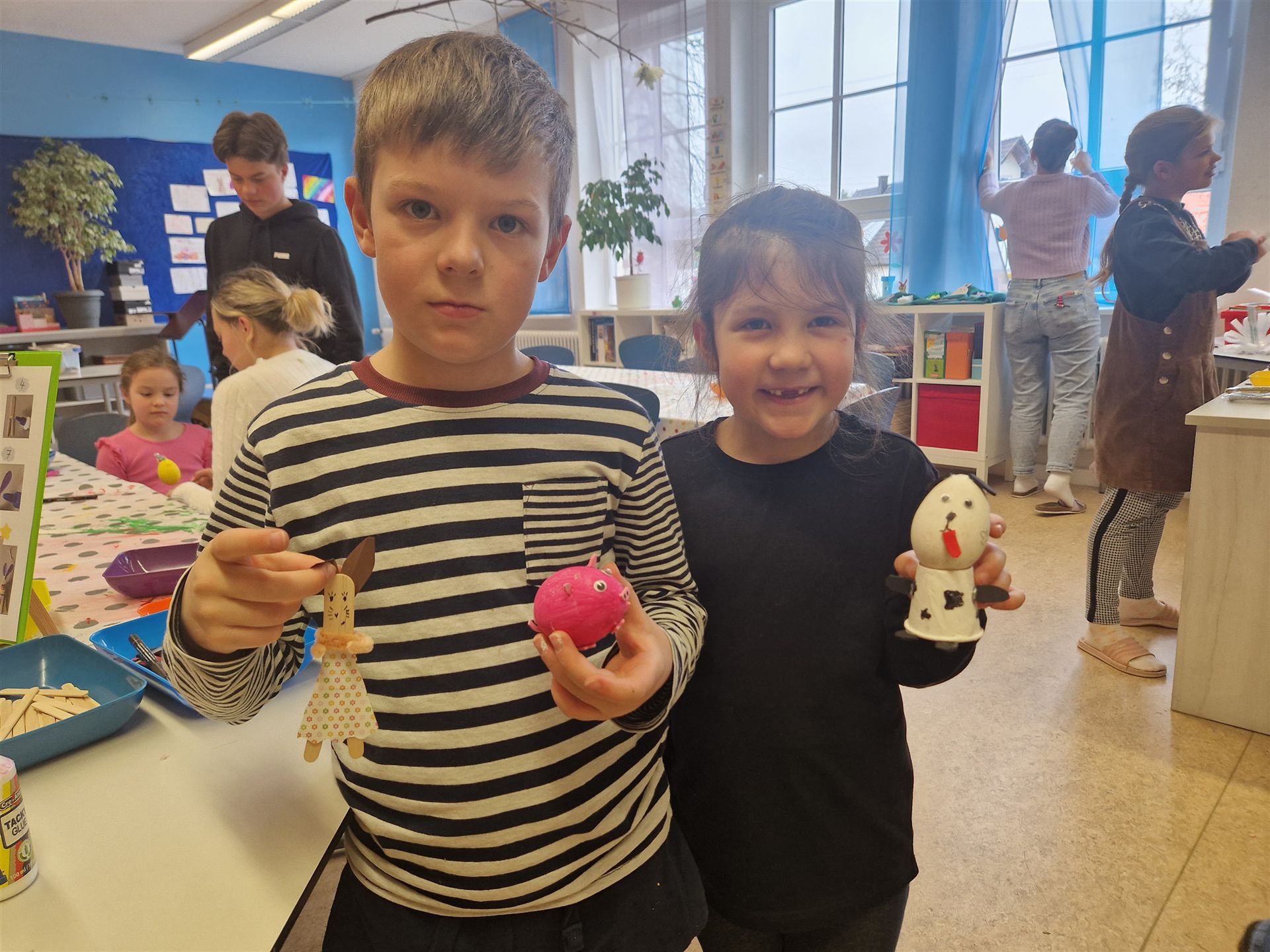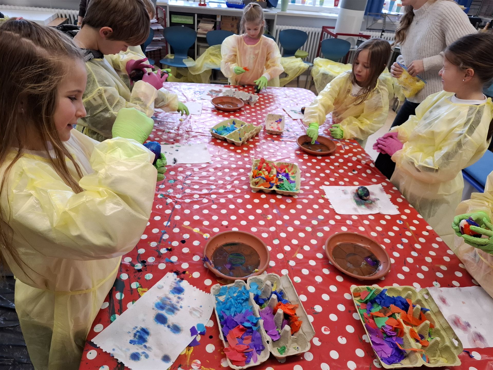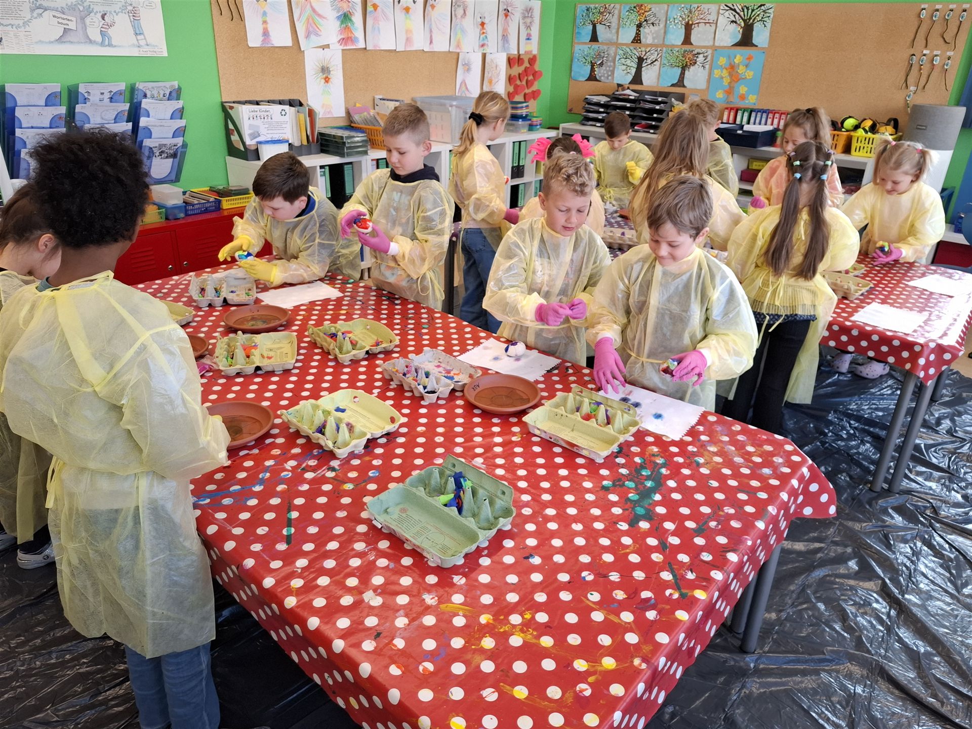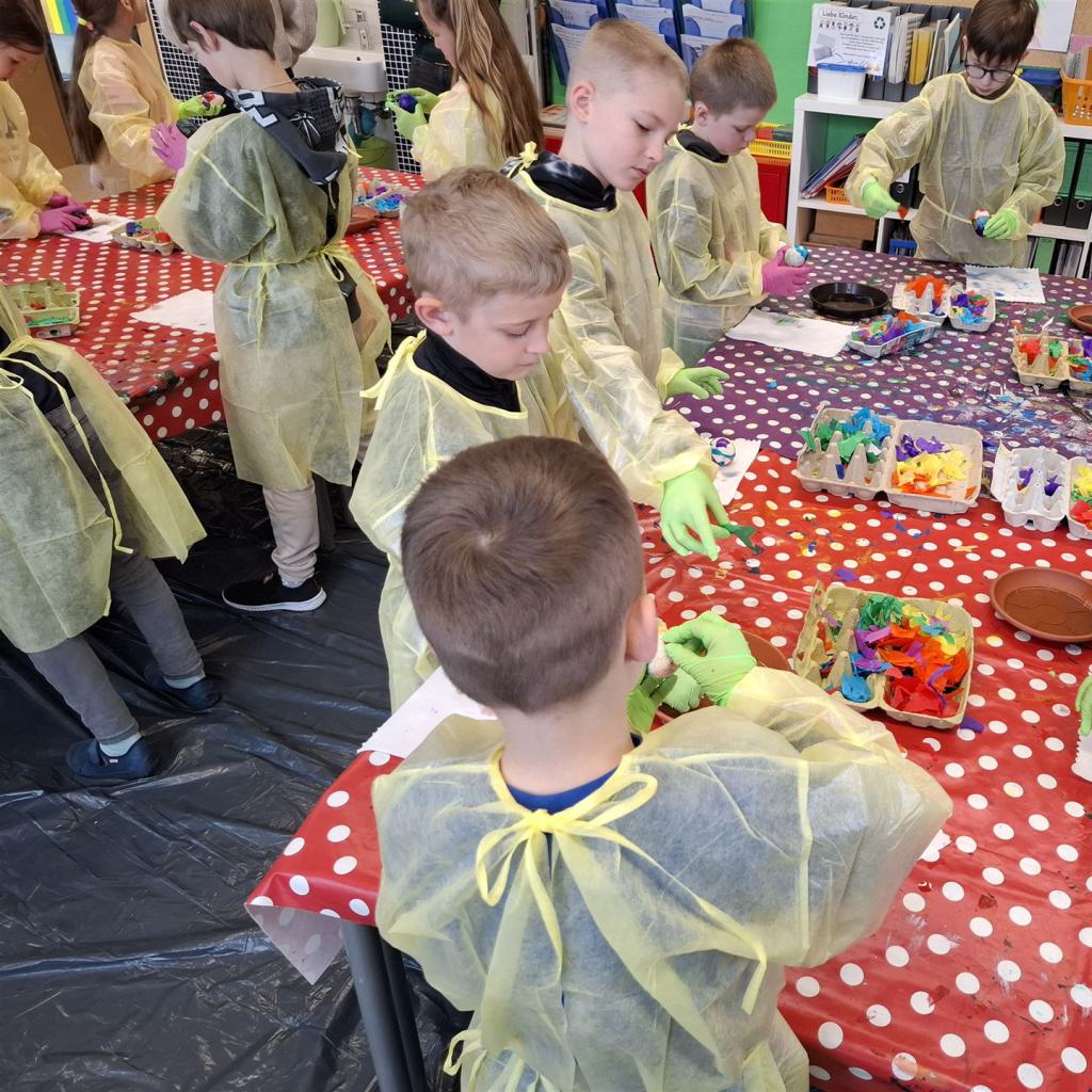 Mit viel Kreativität und Begeisterung nahmen die Kinder an den zahlreichen Bastelangeboten rund um Ostern teil. Ein besonderes Highlight waren dabei die wunderschönen Puteneier, die uns freundlicherweise von Frau Keller zur Verfügung gestellt wurden – herzlichen Dank dafür! Die Eier wurden mit viel Fantasie gestaltet: Ob als niedliche Tiere oder kunstvoll mit Seidenpapier verziert – jedes einzelne war ein kleines Kunstwerk.
