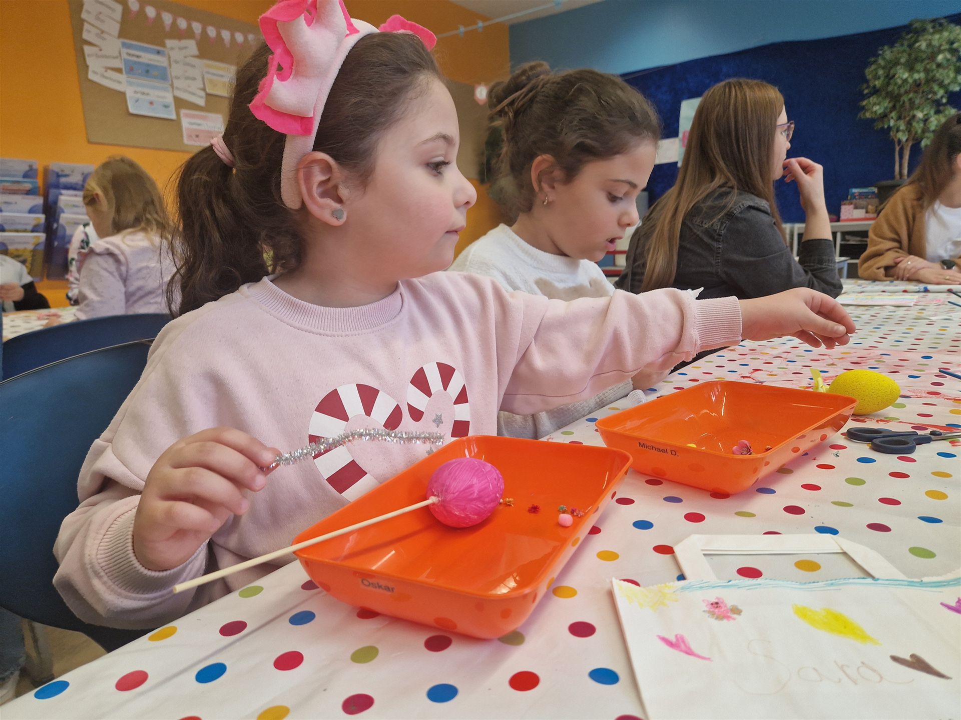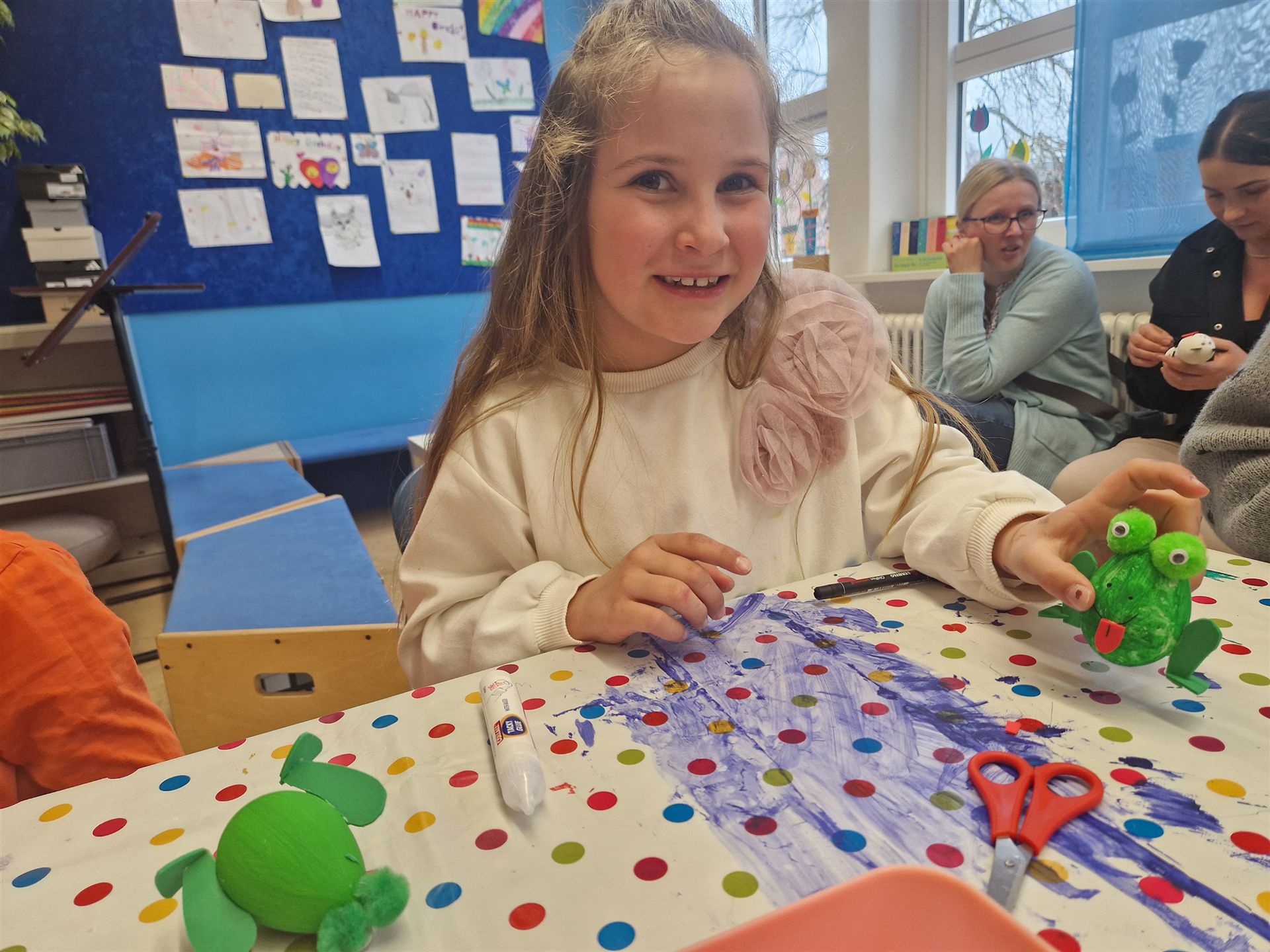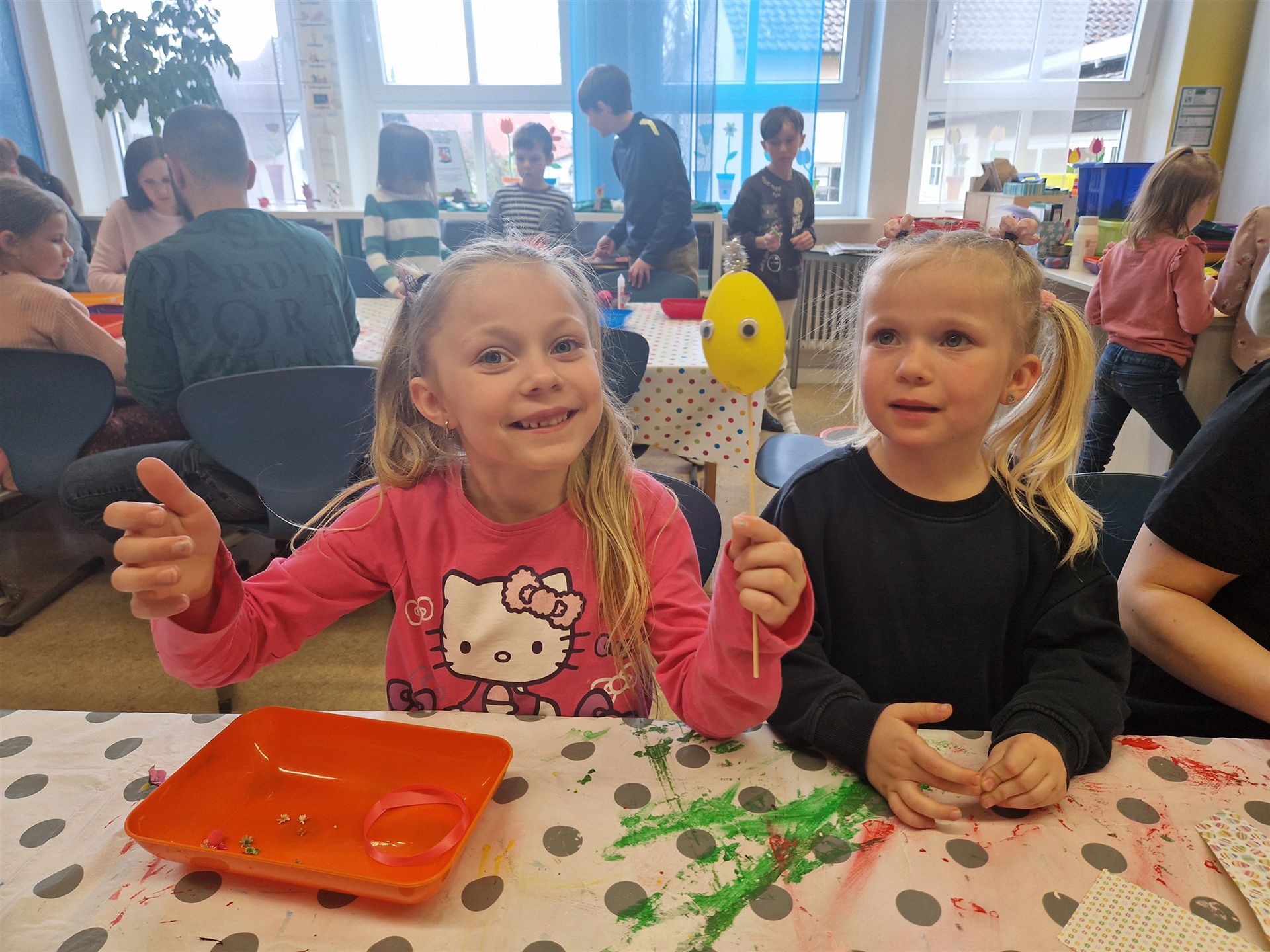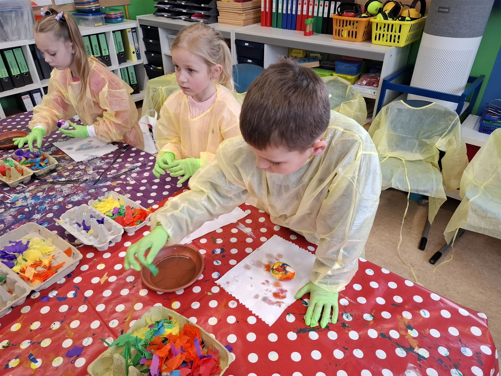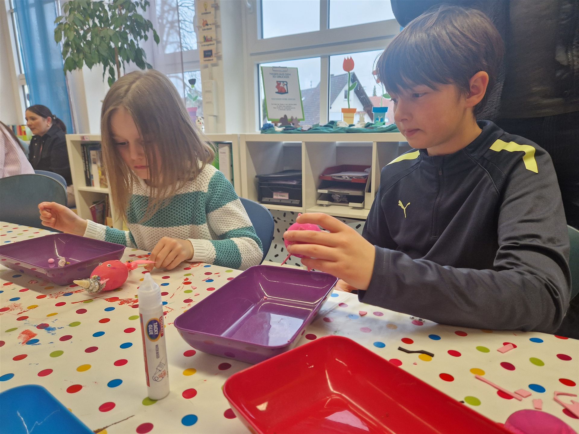 Mit viel Kreativität und Begeisterung nahmen die Kinder an den zahlreichen Bastelangeboten rund um Ostern teil. Ein besonderes Highlight waren dabei die wunderschönen Puteneier, die uns freundlicherweise von Frau Keller zur Verfügung gestellt wurden – herzlichen Dank dafür! Die Eier wurden mit viel Fantasie gestaltet: Ob als niedliche Tiere oder kunstvoll mit Seidenpapier verziert – jedes einzelne war ein kleines Kunstwerk.