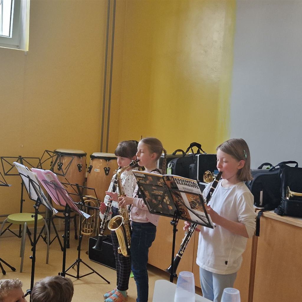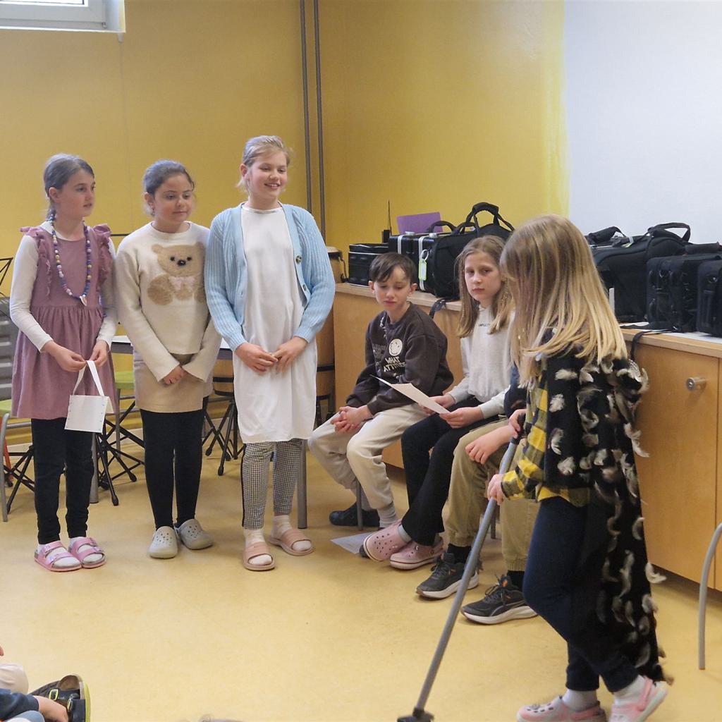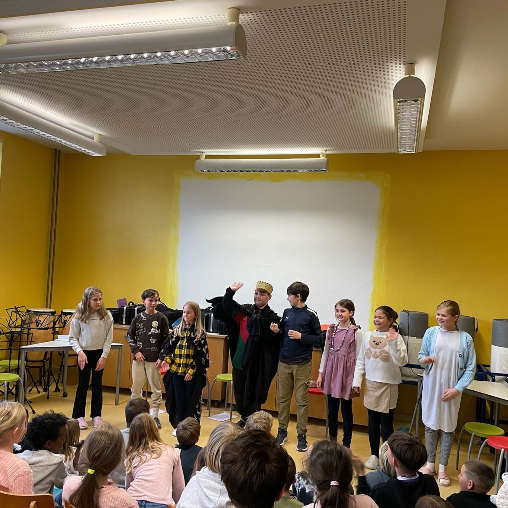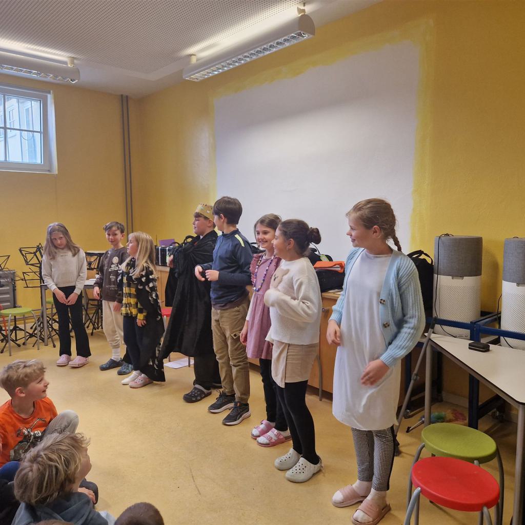 Ein abwechslungsreiches Programm rundete den Tag ab: Die Bläserklasse unter der Leitung von Frau Hafen (Vielen Dank!) begeisterte mit ihren musikalischen Beiträgen und sorgte für festliche Stimmung. Ein weiterer Höhepunkt war die Aufführung des Märchens „Aschenputtel“, das von unseren Viertklässlerinnen und Viertklässlern mit viel Freude und Talent auf die Bühne gebracht wurde.
