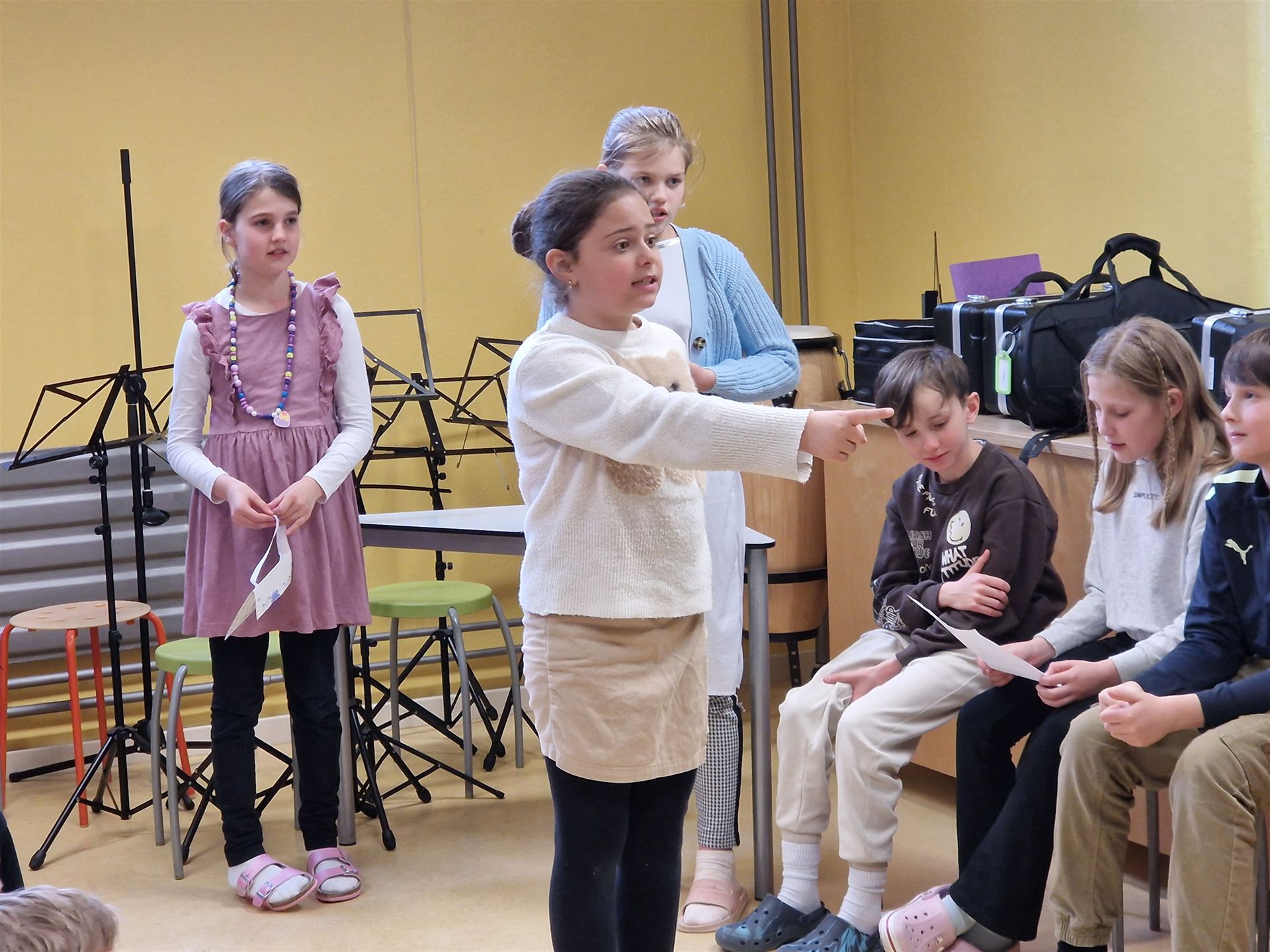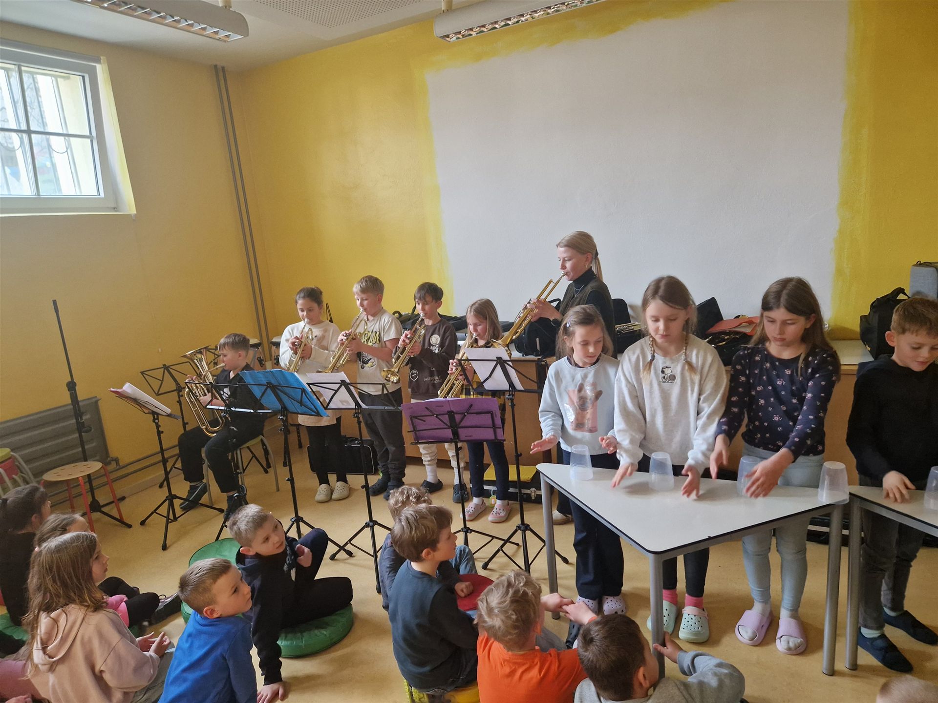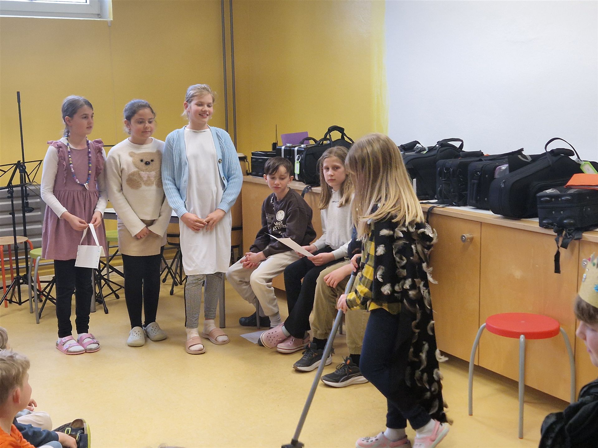 Ein abwechslungsreiches Programm rundete den Tag ab: Die Bläserklasse unter der Leitung von Frau Hafen (Vielen Dank!) begeisterte mit ihren musikalischen Beiträgen und sorgte für festliche Stimmung. Ein weiterer Höhepunkt war die Aufführung des Märchens „Aschenputtel“, das von unseren Viertklässlerinnen und Viertklässlern mit viel Freude und Talent auf die Bühne gebracht wurde.