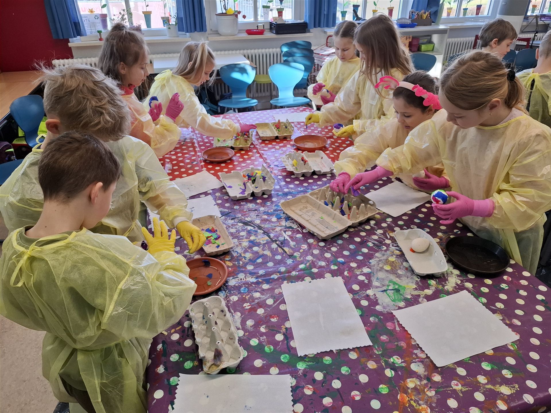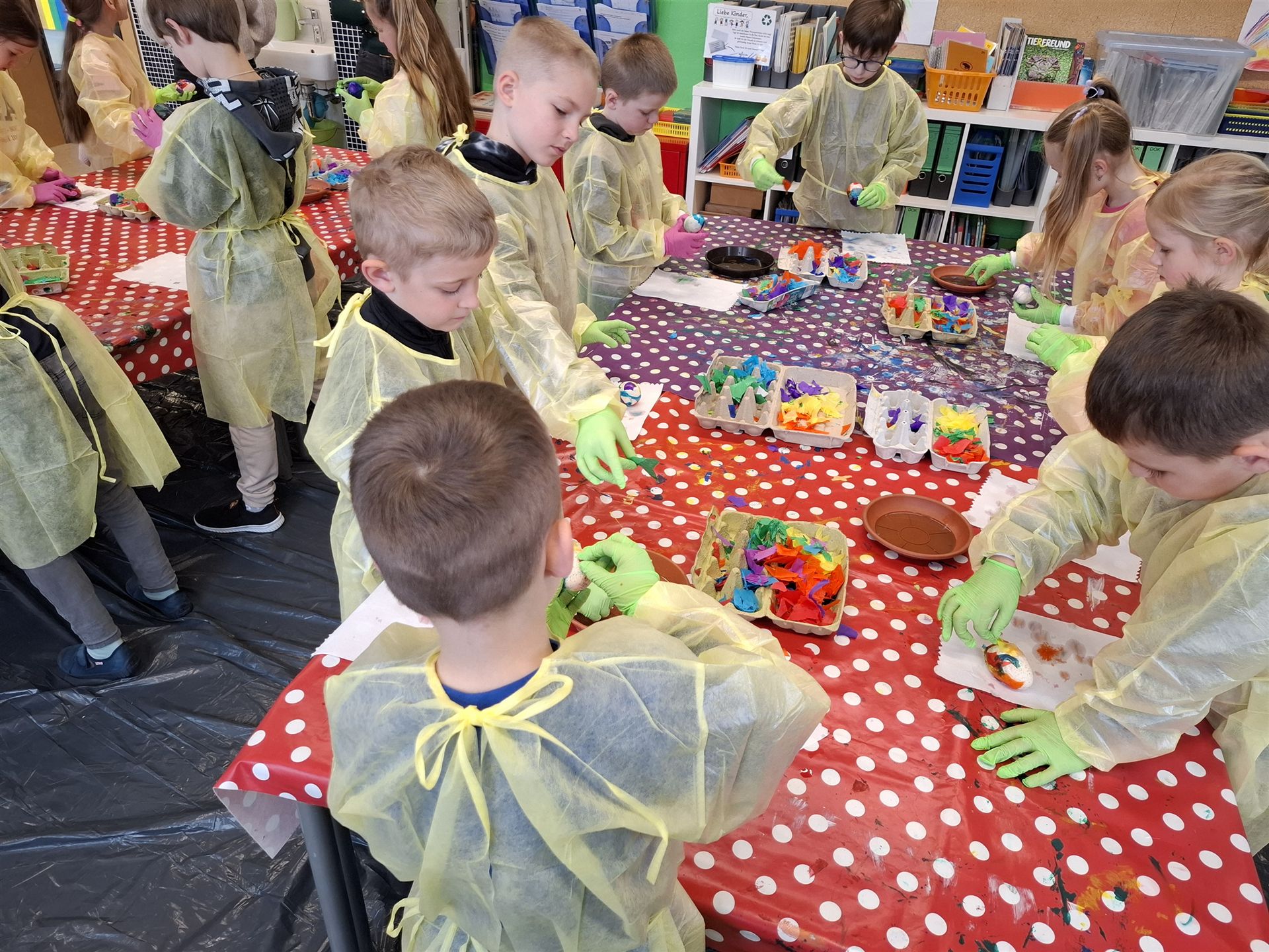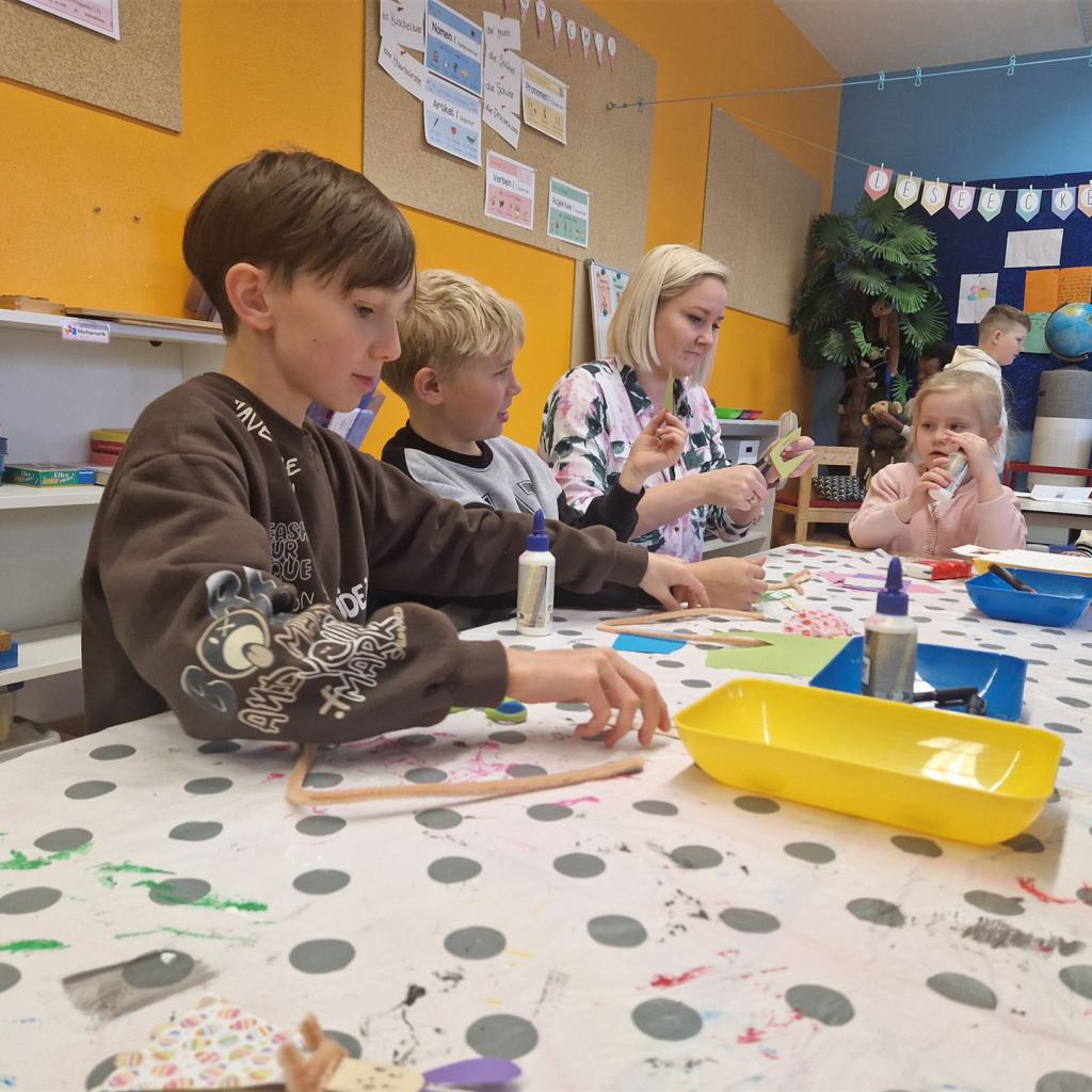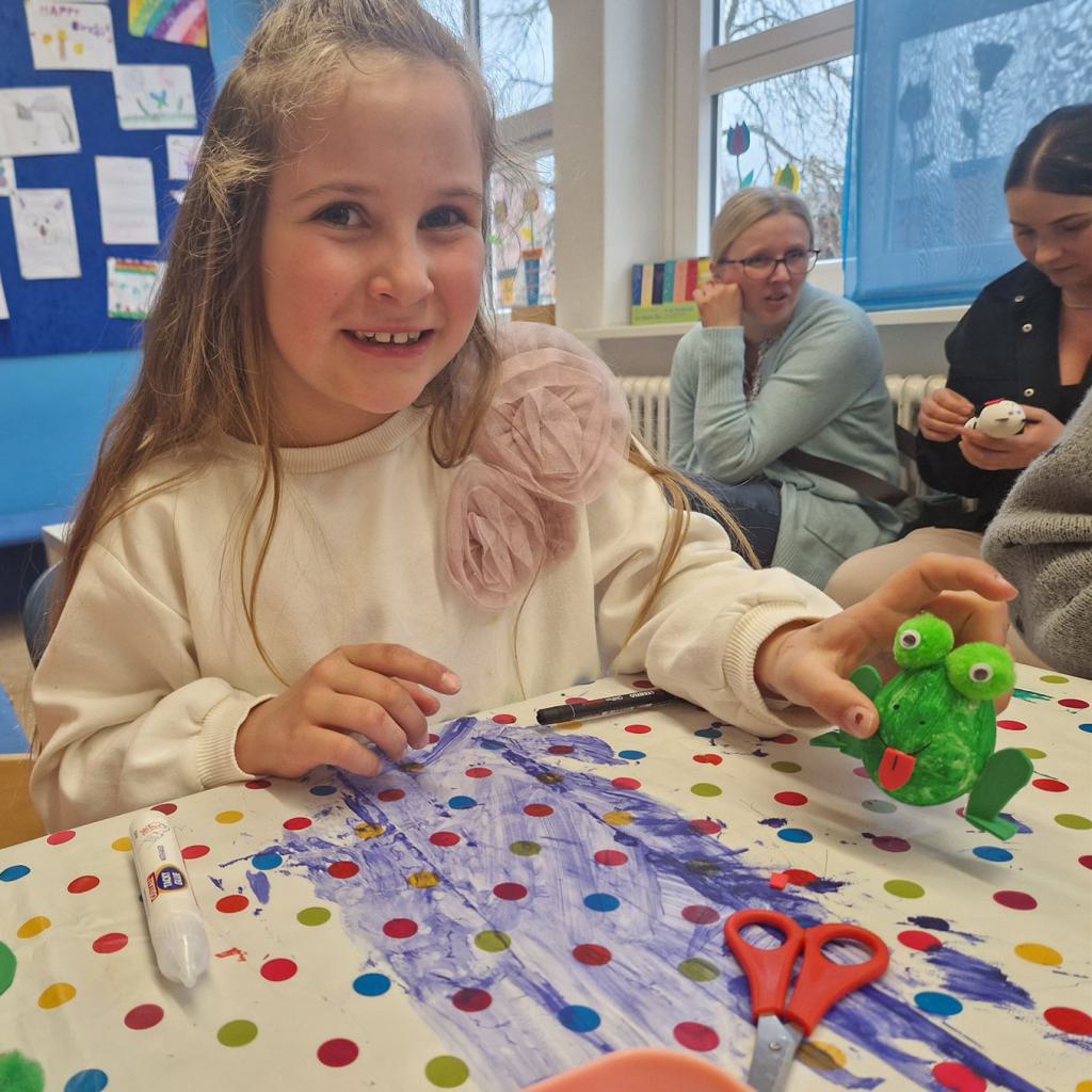 Mit viel Kreativität und Begeisterung nahmen die Kinder an den zahlreichen Bastelangeboten rund um Ostern teil. Ein besonderes Highlight waren dabei die wunderschönen Puteneier, die uns freundlicherweise von Frau Keller zur Verfügung gestellt wurden – herzlichen Dank dafür! Die Eier wurden mit viel Fantasie gestaltet: Ob als niedliche Tiere oder kunstvoll mit Seidenpapier verziert – jedes einzelne war ein kleines Kunstwerk.