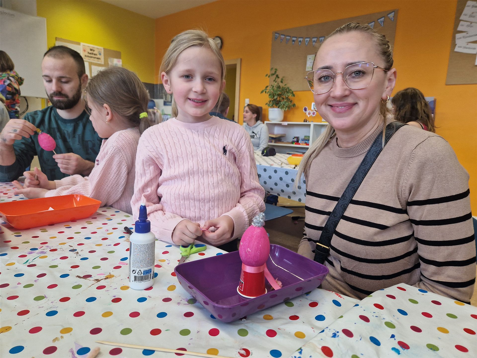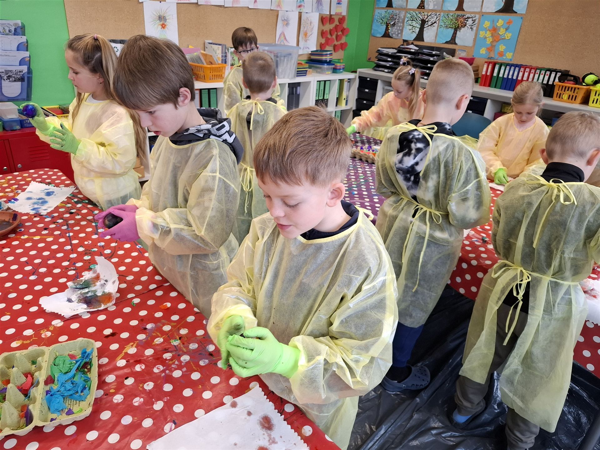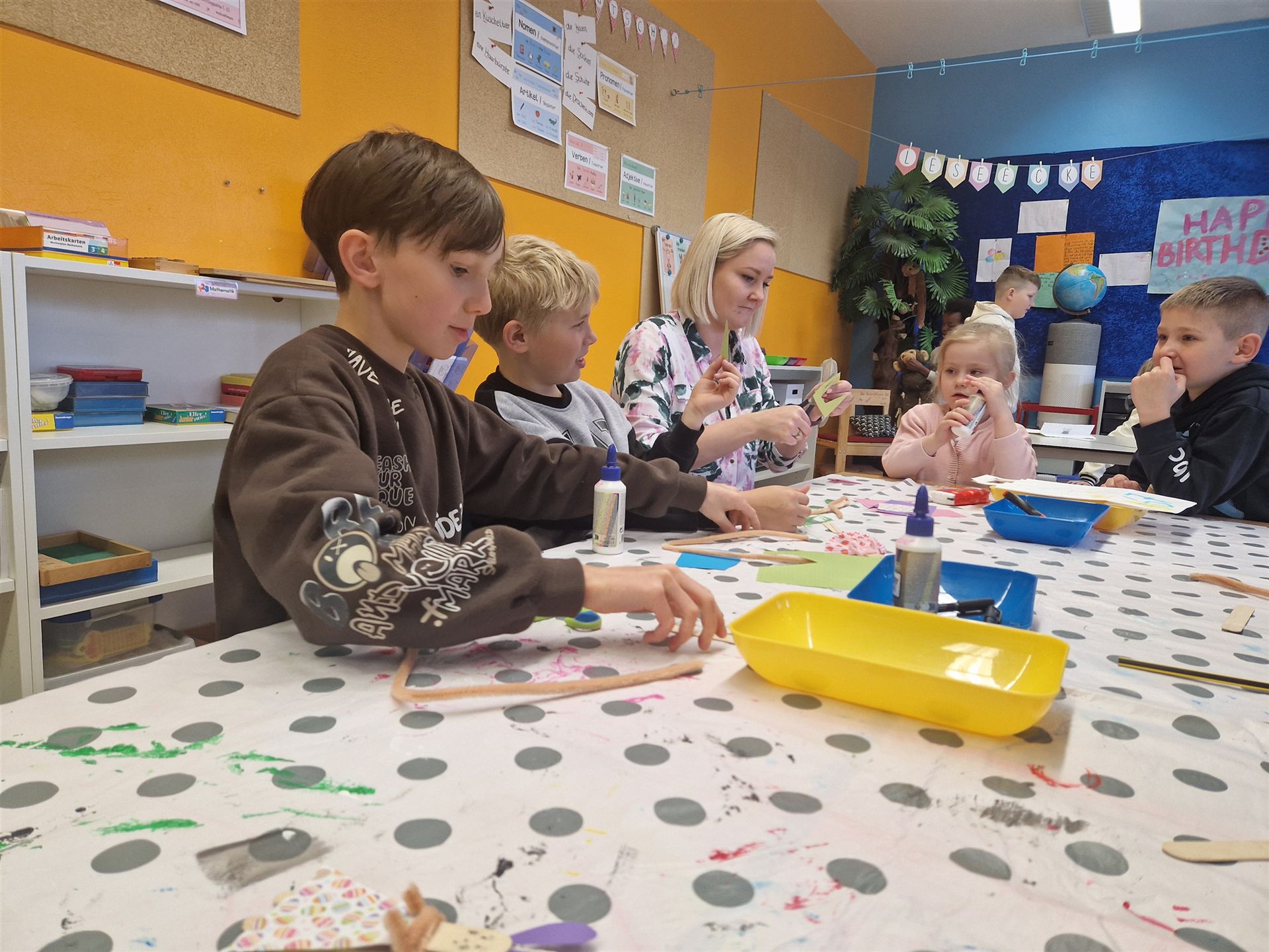 Mit viel Kreativität und Begeisterung nahmen die Kinder an den zahlreichen Bastelangeboten rund um Ostern teil. Ein besonderes Highlight waren dabei die wunderschönen Puteneier, die uns freundlicherweise von Frau Keller zur Verfügung gestellt wurden – herzlichen Dank dafür! Die Eier wurden mit viel Fantasie gestaltet: Ob als niedliche Tiere oder kunstvoll mit Seidenpapier verziert – jedes einzelne war ein kleines Kunstwerk.