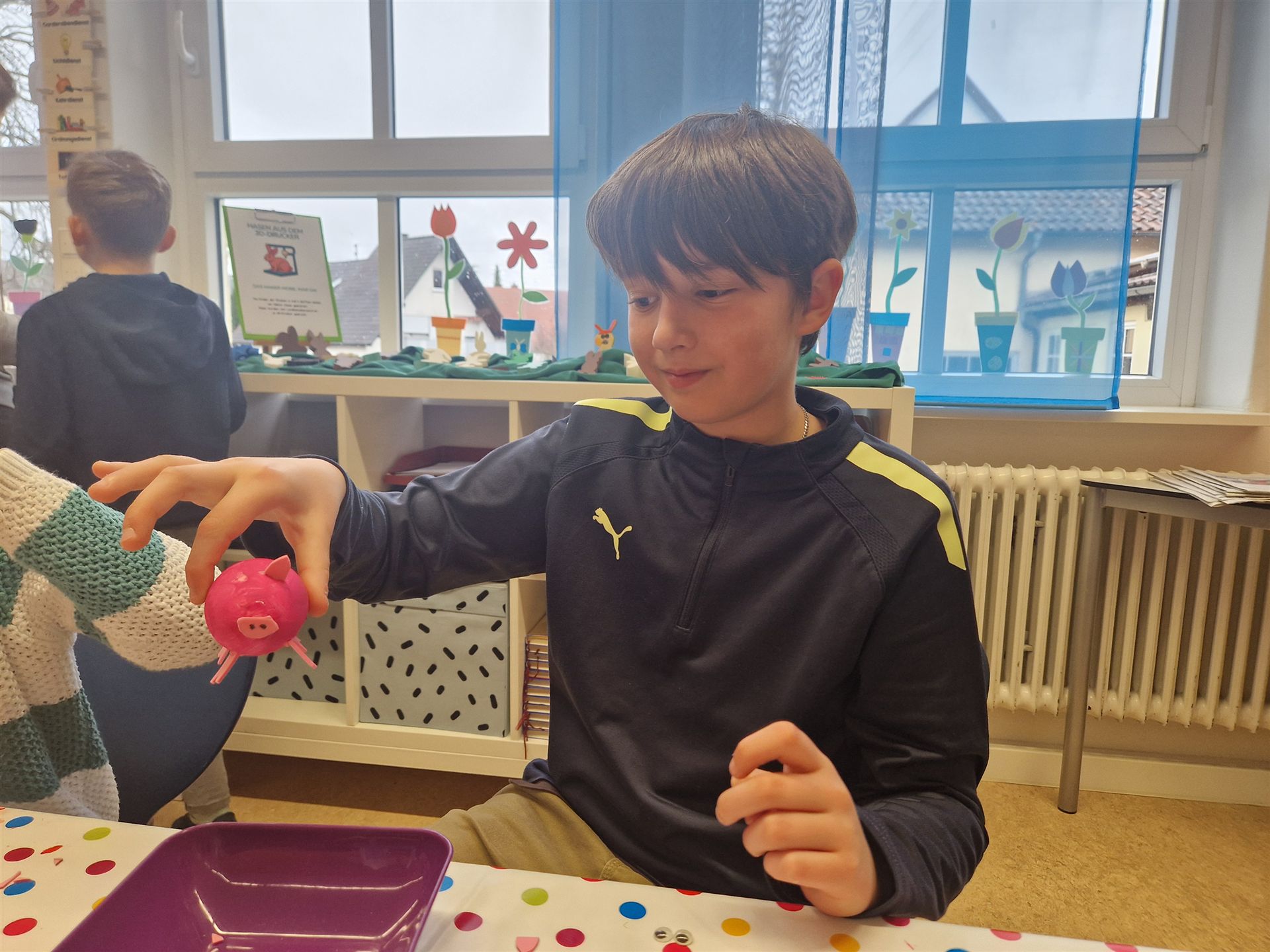 Doch damit nicht genug: An Tablets konnten die Schülerinnen und Schüler ihre ganz persönlichen Hasenkreationen digital entwerfen. Mit großer Neugier probierten sie die Möglichkeiten aus, formten und gestalteten ihre Figuren am Bildschirm. Die Entwürfe wurden danach mit einem 3D-Drucker zum Leben erweckt – und die fertigen Hasen konnten später stolz in den Händen gehalten werden.