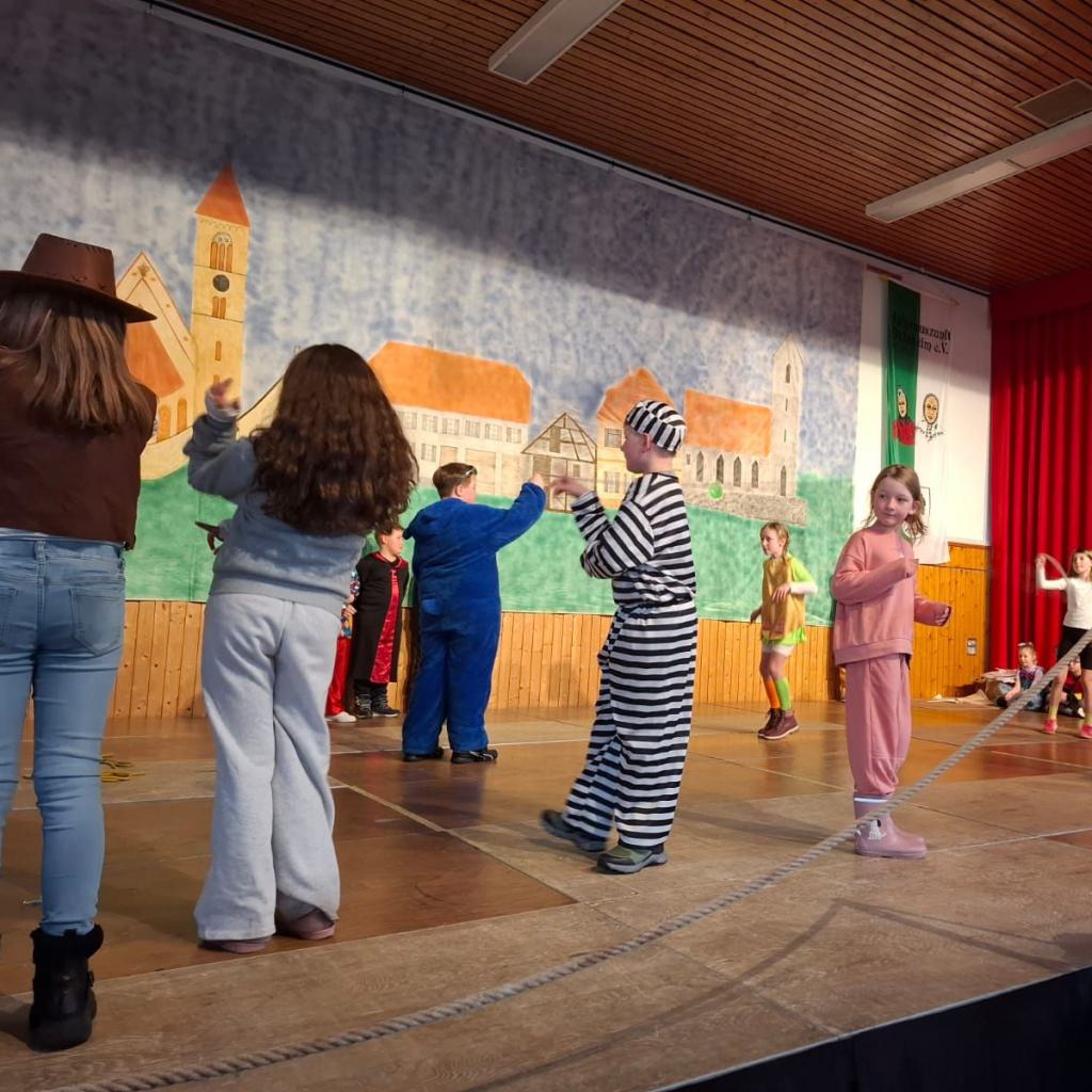Ein besonderes Highlight war der Besuch der Narren. Gemeinsam wurde ein lustiges Spiel veranstaltet: Die Kinder stellten in einer Pantomime verschiedene Begriffe dar, während der Elferrat eifrig raten musste.