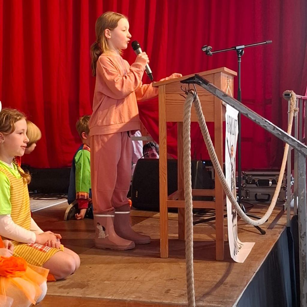 Unsere Viertklässler führten ein Theaterstück auf – die Geschichte vom Raben, der zur Schule will, sorgte für viele Schmunzler und begeisterte nicht nur die Kinder. Auch die Drittklässler trugen mit einem schwungvollen Lied zur festlichen Stimmung bei.